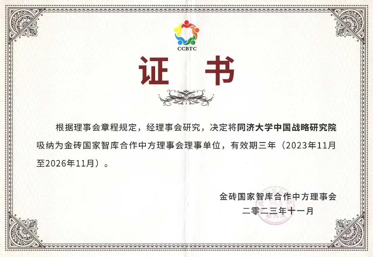 2023年11月1日,由中共中央对外联络部召集的金砖国家智库合作中方理事会2023年会在福建省厦门市举行,同济大学中国战略研究院被遴选为理事会理事单位。
