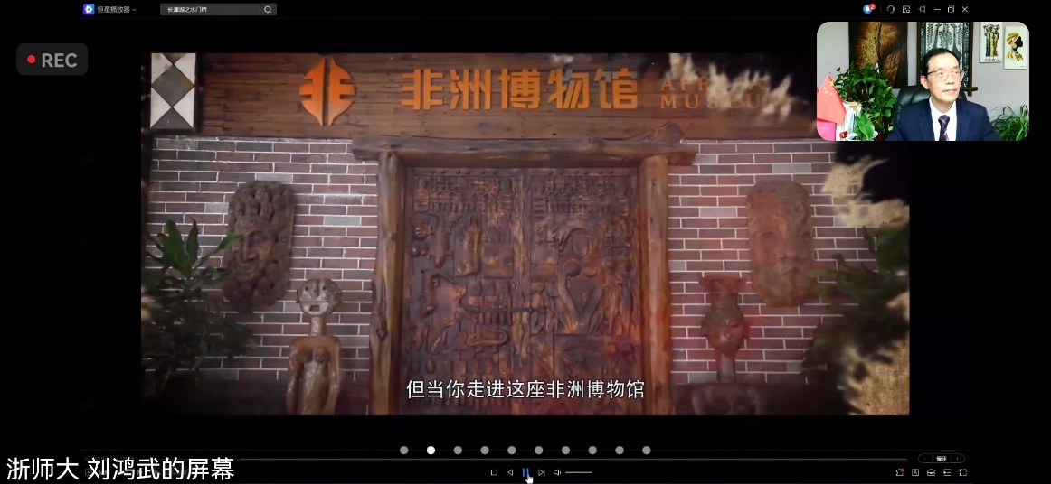 在讲座的最后,刘鸿武教授为大家分享了一段介绍浙江师范大学非洲博物馆的视频,此博物馆是中国高校首家,也是唯一一家非洲博物馆,是非洲文化服务民间外交的最好窗口。在视频中,刘鸿武教授感叹,“非洲人把生活变成了艺术,又把艺术变成了生活”,虽然“最好的非洲博物馆就是非洲大地”,但博物馆突破了时空限制,把生动的非洲色彩展现给参观者。
