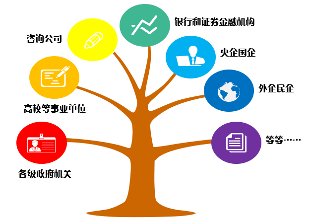1、外交机构、智库、金融机构的决策咨询和风险管理、外资企业的投资咨询和文化沟通、国家行政部门和事业机构的管理岗位、涉外机构的政策法律研究、决策调查和咨询等。