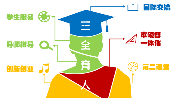 学院以本硕博一体化建设为核心依托,以创新创业与第二课堂面向国内实践,以对外交流与学位合作面向国际视野,以导师指导与学生服务面向教育辅助,将“三全育人”理念贯穿培养始终,致力于实现教学工作与教辅工作、第一课堂与第二课堂、专业学习与实践教育的体系贯通。