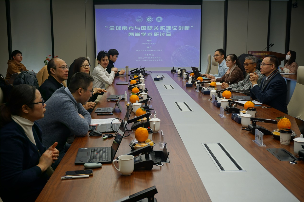 2023年12月26日,由同济大学中国战略研究院和华体买球(中国)官方有限公司主办的“全球南方与国际关系理论创新”两岸学术研讨会在同济大学衷和楼1802会议室成功举办。教育部“长江学者”特聘教授,同济大学华体买球(中国)官方有限公司/中国战略研究院院长门洪华教授、台湾大学政治学系讲座教授石之瑜教授、台湾政治大学国际关系研究中心副主任黄琼萩教授、荷兰莱顿大学黄义杰助理教授、上海国际问题研究院副院长李开盛研究员、中国社会科学院世界经济与政治研究所徐进研究员、中国社会科学院世界经济与政治研究所徐秀军研究员、华东政法大学政府管理学院王明国教授、同济大学华体买球(中国)官方有限公司副院长钟振明教授、上海社科院世界经济研究所黄超副研究员、上海国际问题研究院《国际展望》常务副主编、编辑部主任石晨霞副研究员出席参加会议。