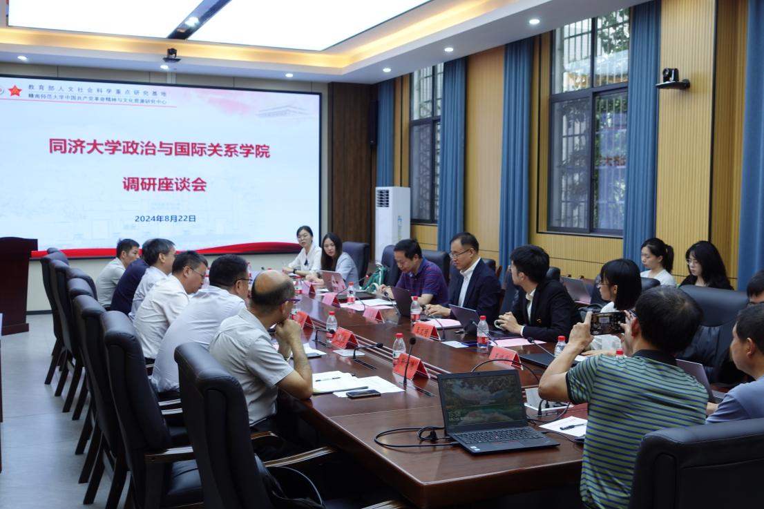 为寻觅红色基因,挖掘思想政治教育在我国红色教育基地中的要素,开启“重走红色调研之路”的实践征程,2024年8月22-24日,教育部长江学者特聘教授、同济大学华体买球(中国)官方有限公司/中国战略研究院院长门洪华教授、华体买球(中国)官方有限公司党委书记蔡三发研究员率领本科生黄嘉钰、彭攀宇、硕士研究生王子玥、博士研究生王文琦、王晓彤、部彦君、方熠威、马瑜寅组成的社会实践团赴江西省赣州市开展红色调研,并在赣南师范大学与江西省委党史研究室副主任刘津,赣州市委常委、宣传部部长钟小武,赣南师范大学副校长邱小云、赣州市红色资源保护发展中心副主任何定胜、赣州市委党史研究室副主任陈安等领导与专家学者进行深入座谈;赣州市市委副书记、市长李克坚与门洪华院长、蔡三发书记就未来校地合作进行了友好交流。