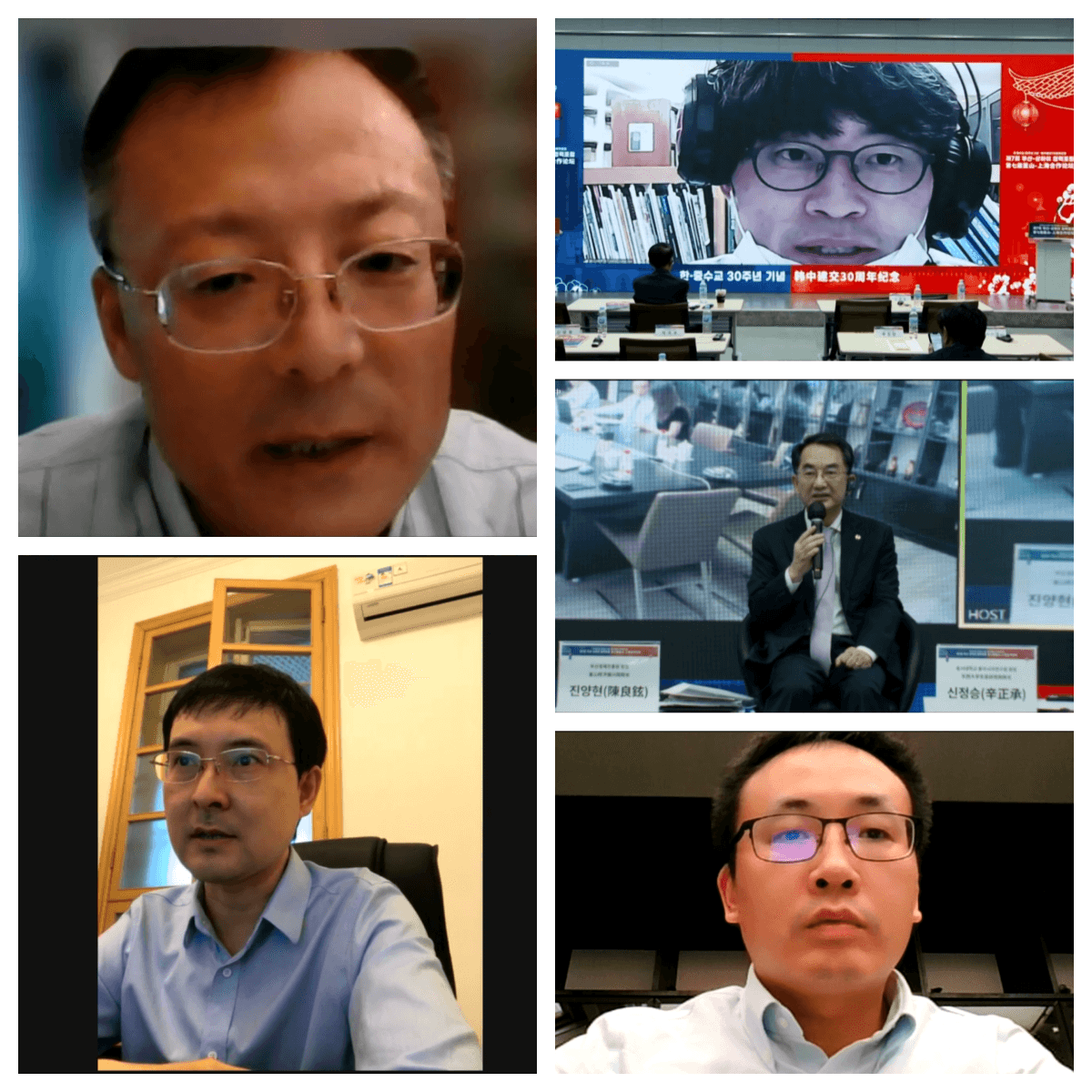 嘉宾致辞之后,本次论坛进入主旨发言环节,中韩两国的四位前任大使级官员交替发言。首先,韩国前驻中国大使、东西大学东亚研究院院长辛正承在主旨发言中回顾了中韩建交30年来的飞跃性发展,认为两国在经济、政治、安全、人文交往等诸多层面取得了可喜的成果,地理相邻的关系和国际关系的稳定为中韩双方分享共同利益提供了便利,而两国关系也得以在风雨之中继续稳定前行。与此同时,当前的中韩关系仍然面对着一些不确定因素,包括美国拜登政府不断强化中美竞争、韩国新政府的对外政策、朝鲜半岛核问题以及中韩国民印象等。在此基础上,中韩两国政府应当继续就东北亚地区和朝鲜半岛的和平与稳定开展合作,并且共同促进区域经济发展和全球治理进程,从而遵循相互尊重和互利平等的原则,促进政治互动、深化战略信任、拓展贸易联系、发展民间交流。