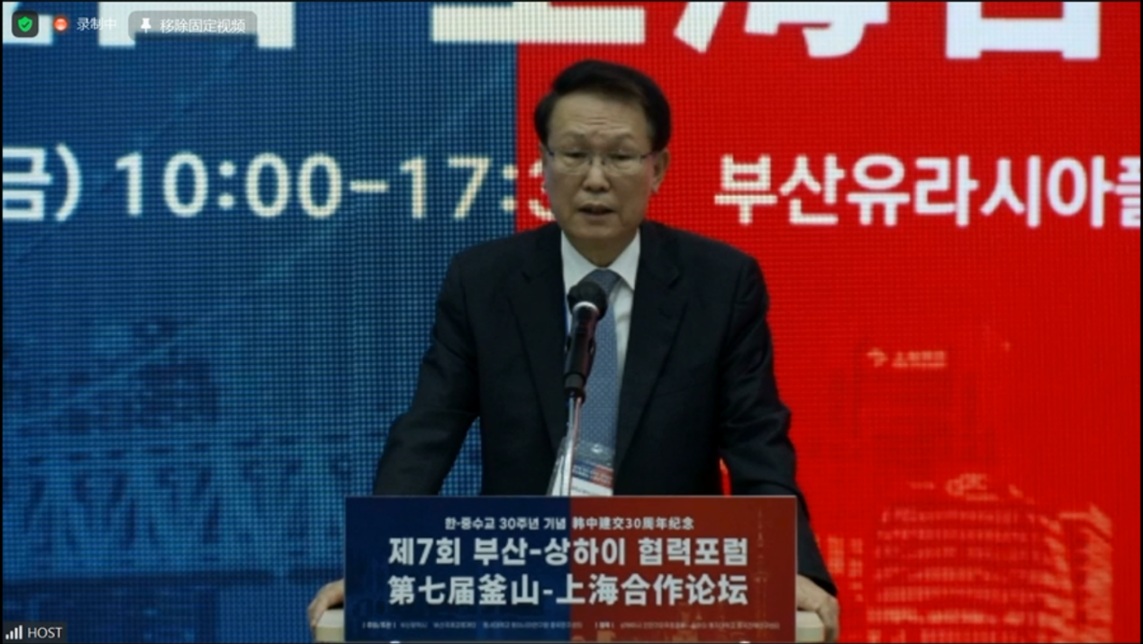 釜山国际交流财团事务总长郑钟弼对中韩主办双方表达了衷心的祝福。他致辞表示,中韩两国地理互邻、经济互补、文化互鉴,在过去30年中既取得了辉煌的发展,也有需要以“同舟共济”的态度去努力弥合的问题,从而更好的促动双边合作、实现共同利益。他认为,本届“上海-釜山合作论坛”是中韩专家学者得以回顾历史、展望未来的重要契机,希望本届论坛可以促动中韩两国排除障碍、巩固友谊、强化合作。