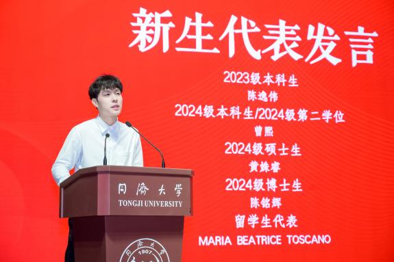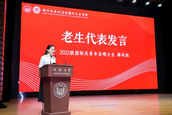 随后老生代表鼓励新时代青年以坚韧意志、自信态度及团结精神,勇担时代使命,共同书写同济人的精彩篇章。新生代表们用热情洋溢的话语回应着老师和学长的嘱托,在发言中他们毫无保留的表达着对百年学府的崇敬之情,也号召全体国政人不辜负老师和学长的期望,心怀家国、勇于面对挑战,严谨治学、互助共进、共筑学术梦想,以饱满的热情和温暖的情怀共同拥抱世界。