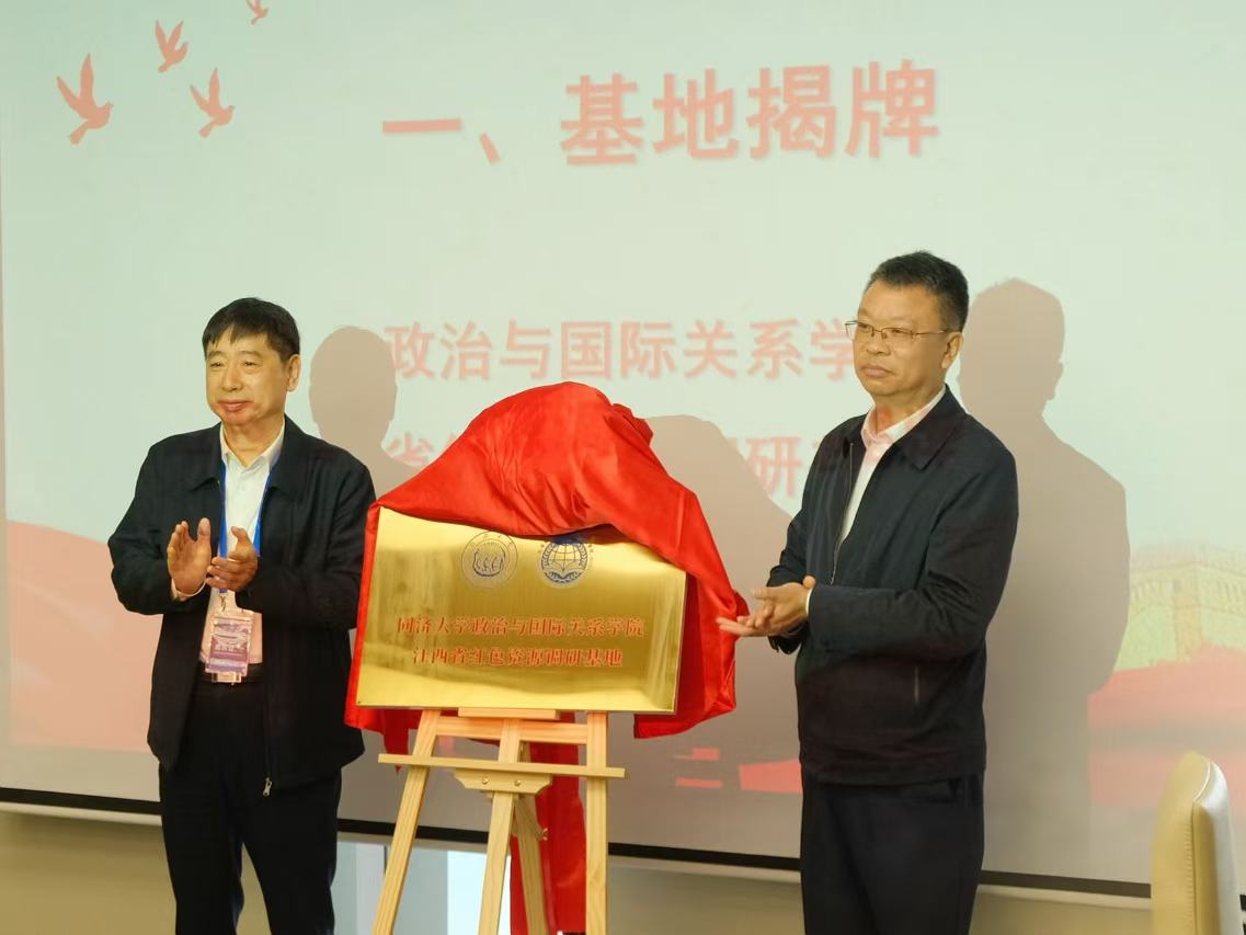 会议伊始,同济大学华体买球(中国)官方有限公司党委书记蔡三发研究员简要介绍了本次会议的整体背景。蔡三发研究员指出,红色资源是中国共产党领导广大人民群众在实践中留下的革命历史文化遗产,是新时代中国共产党人的精神力量源泉,因此在新时代我们要用好红色资源,传承红色基因,发扬红色文化。随后,会议邀请同济大学党委副书记吴广明教授与江西省省委党史研究室刘津副主任共同为同济大学华体买球(中国)官方有限公司江西省红色调研基地揭牌,红色调研基地的建立也为国政学院与江西省有关单位的红色资源调研合作奠定了坚实基础。