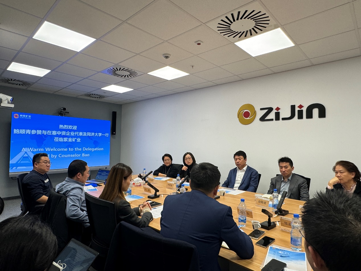 下午,五名博士研究生在宋黎磊教授的带领下赴紫金矿业开展企业调研。与会方包括中国驻塞尔维亚使馆经商处以及来自紫金矿业、中国路桥、中国电建、华为等在塞中企的代表。各方围绕“中资企业在塞尔维亚的发展与合作”这一主题,展开了深入交流与探讨。博士生调研团与中资企业商会各单位进行了互动问答。双方就基础设施建设、企业经营状况、属地化管理政策、人才引进与培养、跨文化交流、企业合规经营、数据治理、校企合作以及舆情管理等多个维度进行了热烈而深入的讨论。宋黎磊教授表示,通过此次交流,同济大学将进一步加强与中塞双方的学术与实践合作,为促进中资企业海外发展提供智力支持。