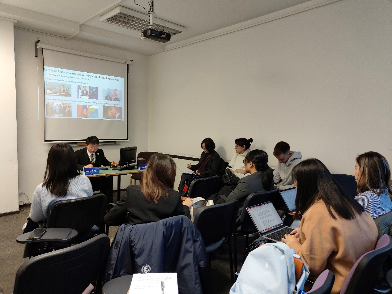 论坛期间,同济大学15名硕博研究生在主会场和平行会场分别进行学术汇报,讨论了全球环境治理、欧盟绿色转型、欧洲一体化进程、安全治理等前沿话题,贝尔格莱德大学师生对此进行了积极评论与提问,会场讨论气氛热烈。汇报结束后,宋黎磊教授和武契尼奇教授均对学生的研究成果表示肯定,并建议进一步聚焦研究主题,强化研究方法与文献支持。同时,双方均对两校师生间的友好交流表示肯定,并期待双方在未来进一步开展更密切、更多维的交往。