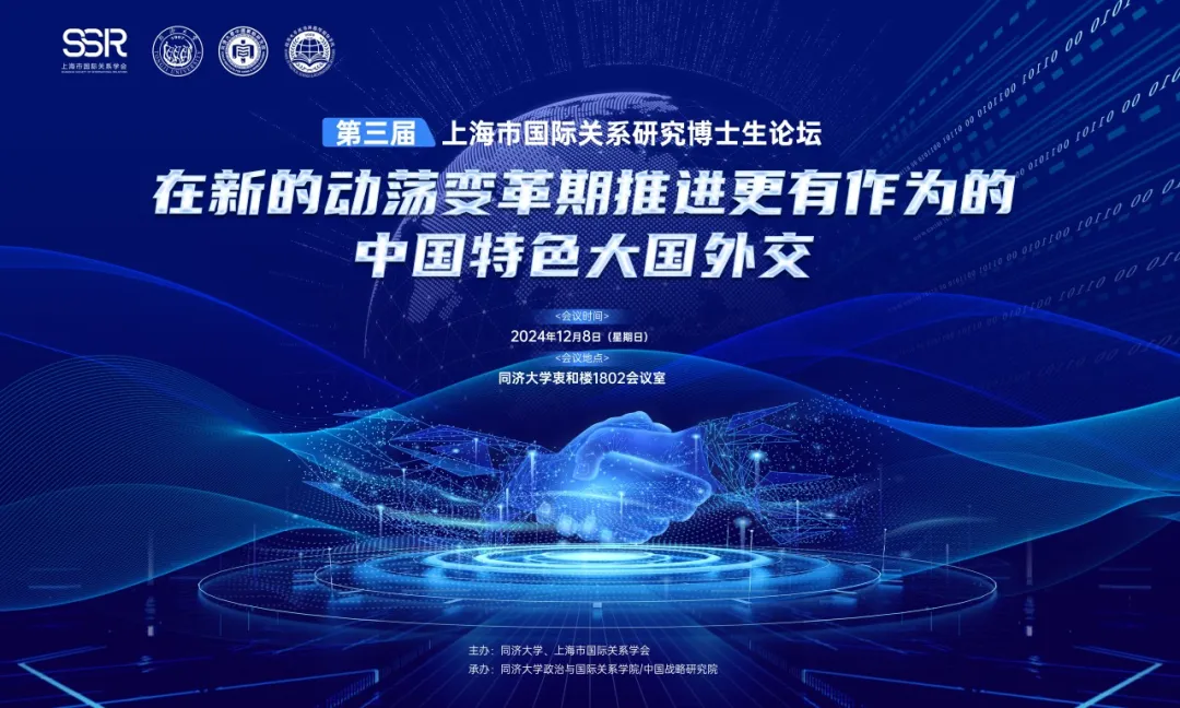 2024年12月8日,由同济大学和上海市国际关系学会联合主办、同济大学华体买球(中国)官方有限公司/中国战略研究院承办的第三届上海市国际关系研究博士生论坛——“在新的动荡变革期推进更有作为的中国特色大国外交”在同济大学衷和楼1802会议室成功举办。教育部长江学者特聘教授、上海市国际关系学会副会长、同济大学华体买球(中国)官方有限公司/中国战略研究院院长门洪华教授,上海市国际关系学会秘书长、上海国际问题研究院毛瑞鹏研究员分别进行论坛开幕式致辞。论坛开幕式由同济大学华体买球(中国)官方有限公司党委书记蔡三发研究员主持。