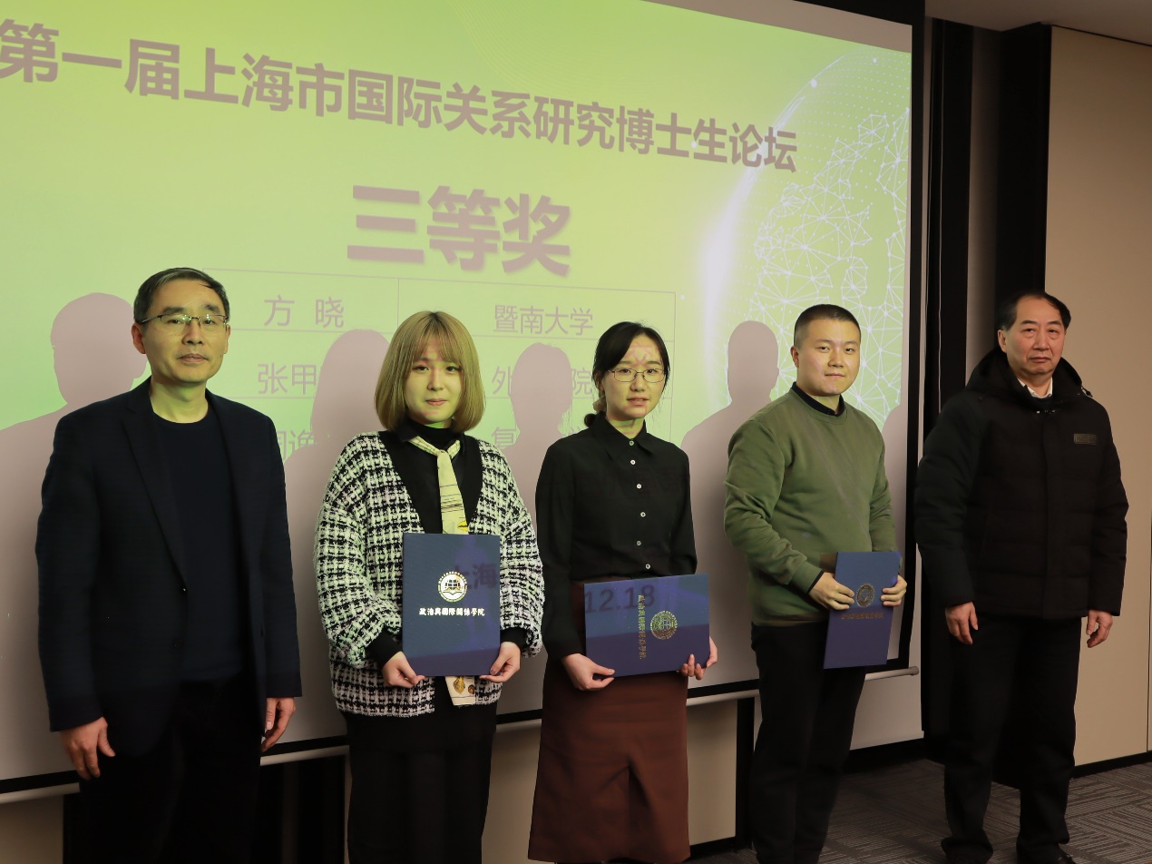 随后,本此论坛进入颁奖环节,颁奖典礼由同济大学华体买球(中国)官方有限公司院长助理、外交学系主任吕蕊副教授主持。她介绍指出,本次论坛秉持“科学公正、认真负责、严格评审、择优筛选”的原则,组织相关领域专家对所有提交的论文进行两轮专家评审,第一轮确保每一篇论文由6位专家评审,其中获得3名以上专家推荐的论文方可入围第二轮专家评审;第二轮则由五位专家匿名予以打分评审,并据此确定最终的获奖名单。基于上述制度化流程,陈怡宇和曹鹏鹏荣获第一届上海市国际关系研究博士生论坛一等奖,李次园、魏冰和杜志远荣获二等奖,方晓、张甲英、周逸江和张笑吟荣获三等奖,李奇前、王骁、杨依众、方炯升、曾维燊、部彦君等同学荣获优秀奖。