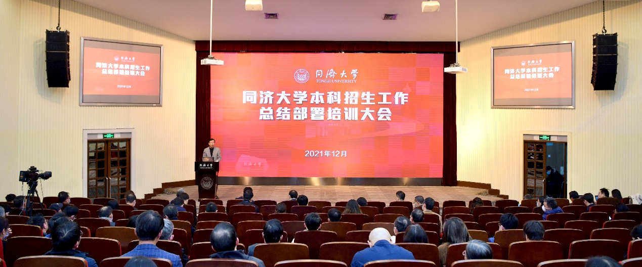 2021年12月21日,同济大学本科招生工作总结部署培训大会召开,全面回顾总结2021年本科招生工作,并对2022年本科招生工作进行部署,对本科招生宣讲工作进行培训。校党委书记方守恩、校长陈杰、校党委副书记方平、副校长顾祥林出席,常务副校长吕培明主持会议。