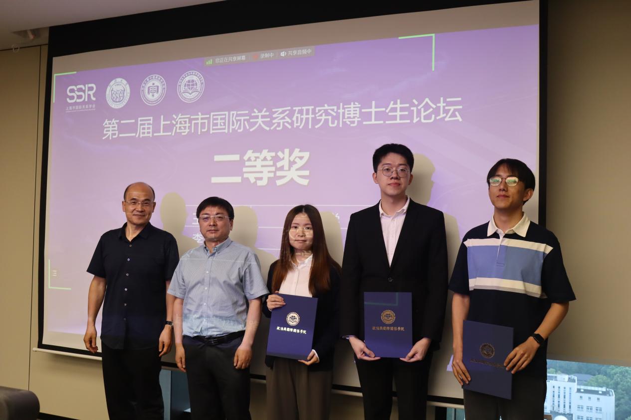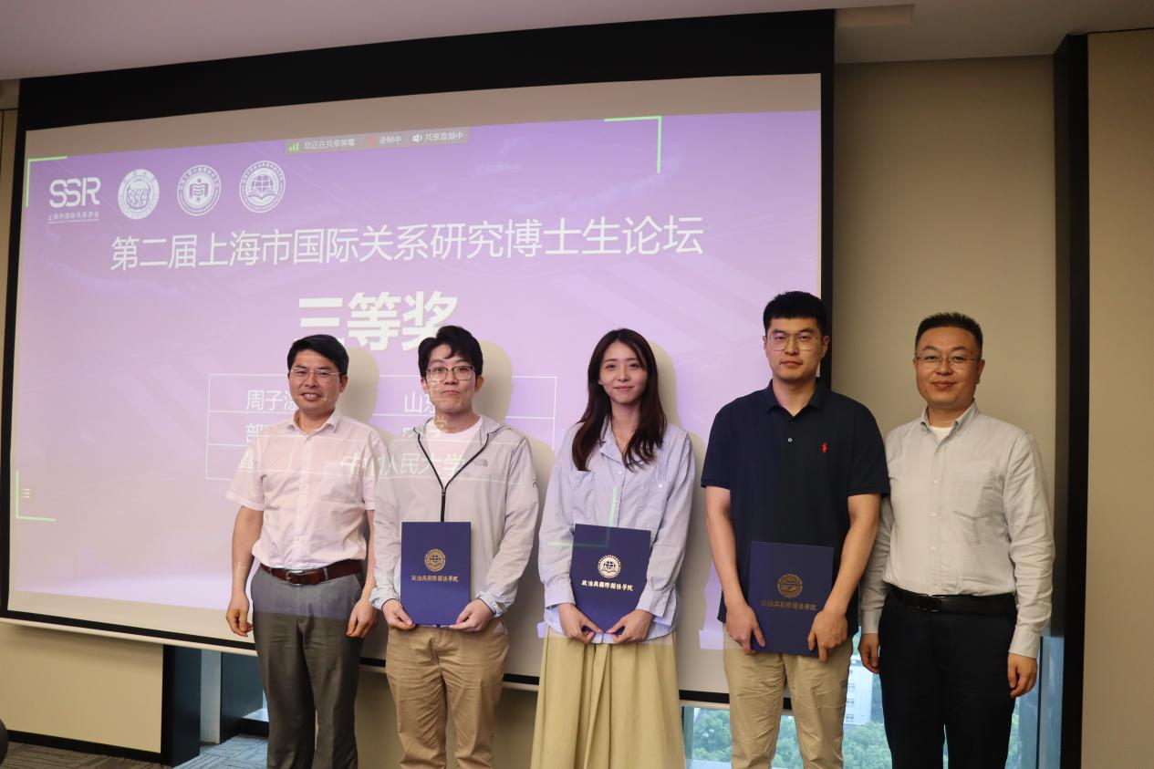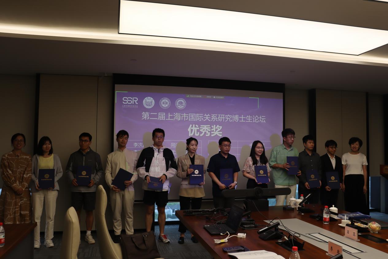 随后,本此论坛进入颁奖环节,颁奖典礼由同济大学华体买球(中国)官方有限公司院长助理吕蕊副教授主持。她介绍指出,本次论坛秉持“科学公正、认真负责、严格评审、优中选优”的原则,进行了三轮专家评选,最终评出一等奖3名,二等奖3名,三等奖4名,优秀奖10名。其中,于阳、董青青、丁迪荣获第二届上海市国际关系研究博士生论坛一等奖,王文琦、李源、黄贝荣获二等奖,周子淙、部彦君、郑鑫、陈钰瑶荣获三等奖,李次园、李潇枭、赵新雷、姚乐、朱刚毅、李乾、曹鹏鹏、赵祺、侯长坤、陶丽娇荣获优秀奖。