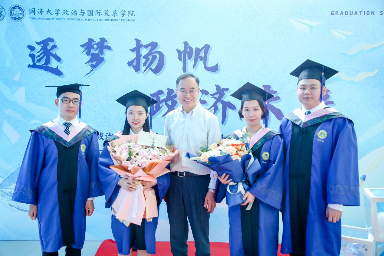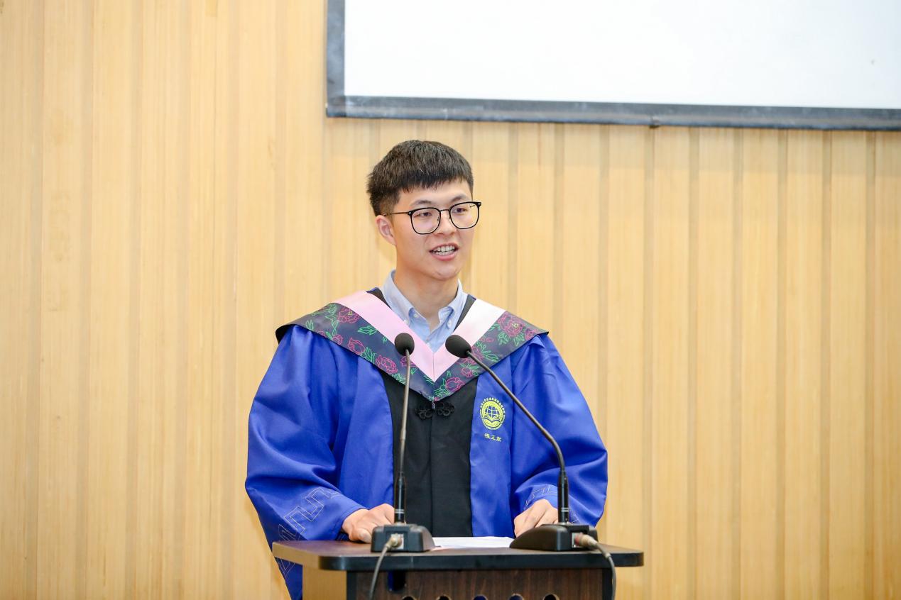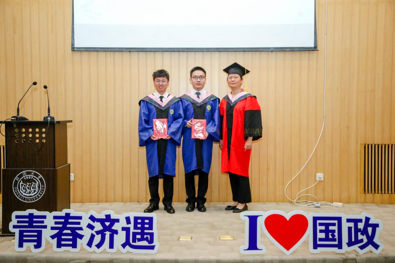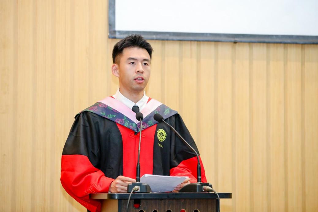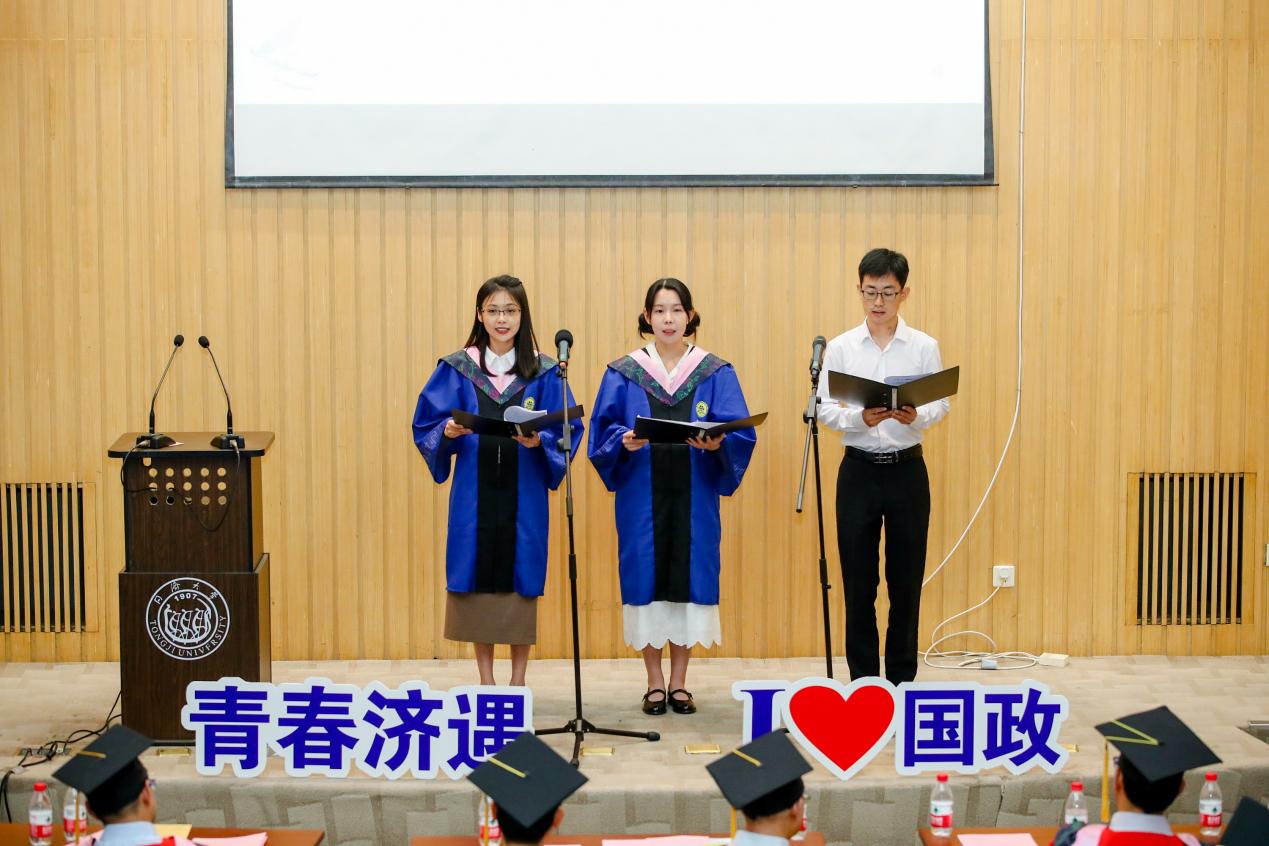 在毕业生代表发言环节,本科生代表冯骏鹏同学感谢国政学院全体老师教授广博的学术知识和严谨的治学态度,相信各奔东西的同济国政人会不负时代、不负韶华,与国同修远志、从政济扬新舟,让青春在火热实践中绽放绚丽之花;硕士生代表谭帅同学提到母校、学院已成为大家的精神家园、心灵港湾与情感依托,会始终将老师们的谆谆教诲铭记于心,以青春之我、奋斗之我开拓人生、奉献社会,干干净净做人、认认真真做事、踏踏实实做学问;博士生代表俞钦文同学表示学习与进步是永恒的主题,正是学院教会自己与学习为伴、与时间为伴、与卓越为伴,能够坦然面对成功与失败,并将学术研究作为终身事业矢志奋斗。