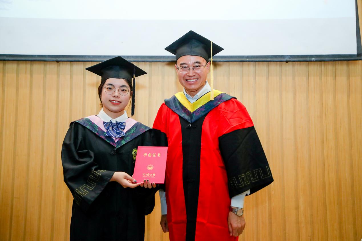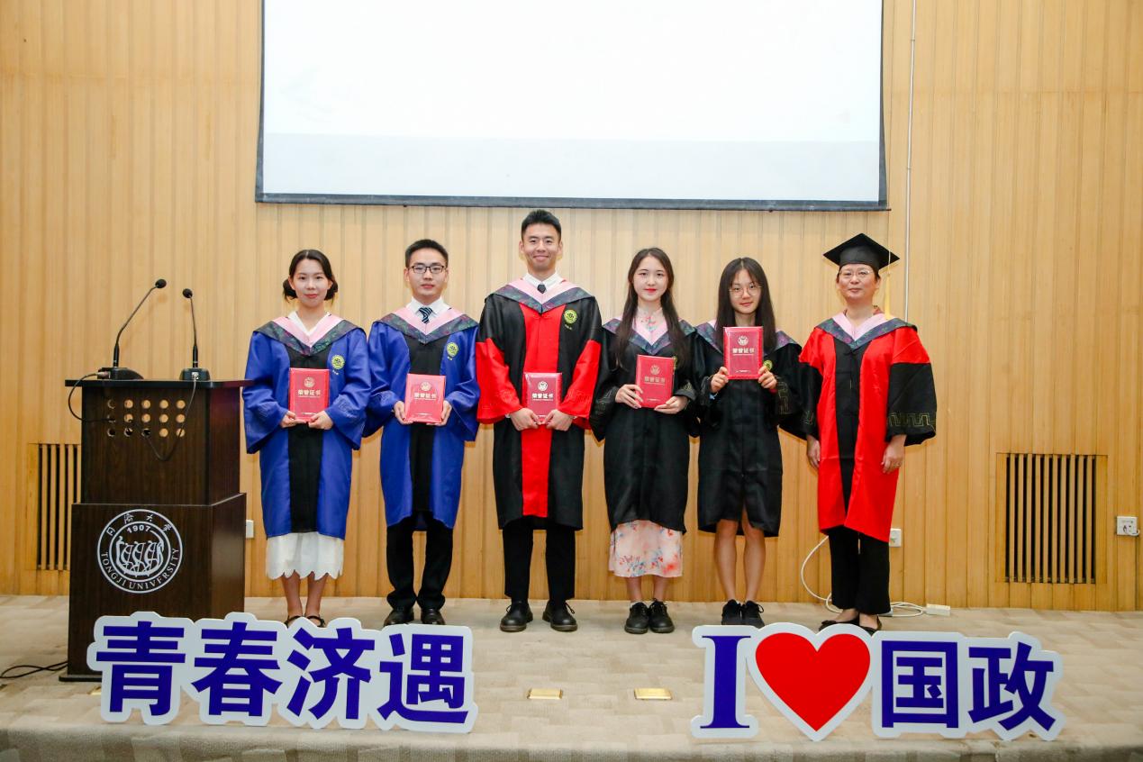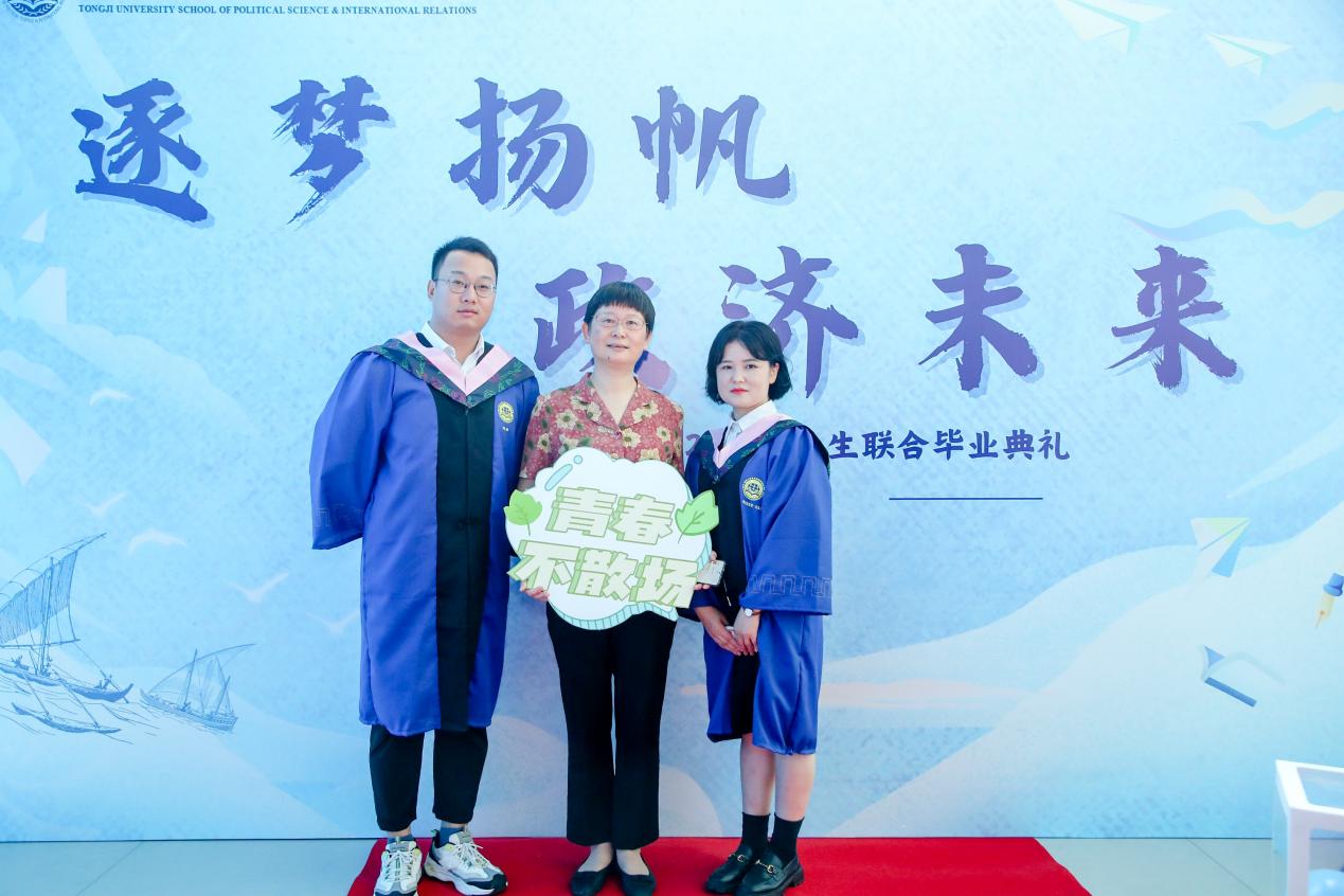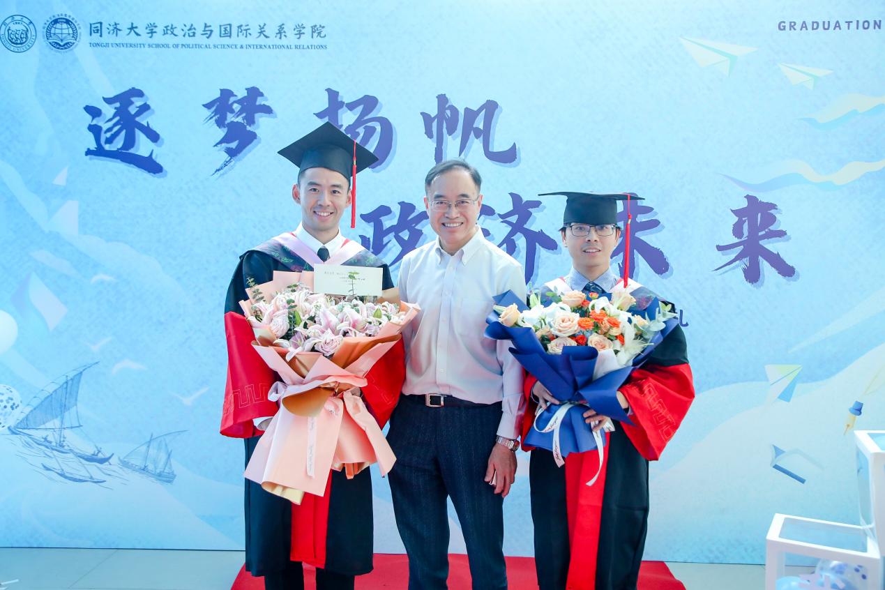 在毕业生代表发言环节,本科生代表冯骏鹏同学感谢国政学院全体老师教授广博的学术知识和严谨的治学态度,相信各奔东西的同济国政人会不负时代、不负韶华,与国同修远志、从政济扬新舟,让青春在火热实践中绽放绚丽之花;硕士生代表谭帅同学提到母校、学院已成为大家的精神家园、心灵港湾与情感依托,会始终将老师们的谆谆教诲铭记于心,以青春之我、奋斗之我开拓人生、奉献社会,干干净净做人、认认真真做事、踏踏实实做学问;博士生代表俞钦文同学表示学习与进步是永恒的主题,正是学院教会自己与学习为伴、与时间为伴、与卓越为伴,能够坦然面对成功与失败,并将学术研究作为终身事业矢志奋斗。