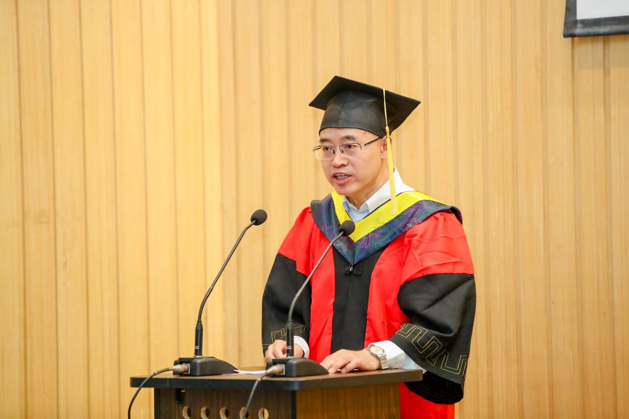 钟晓华副教授祝贺在座同学经过数年的勤奋学习和各种艰难与波折,从此开启人生新篇章。无论前方的道路如何曲折,各位毕业生都要坚持自己的信念和价值观,不断前行,不断成长。无论何时何地,都要保持对自我提升的追求,对世界的热爱,对生命的尊重。愿各位同学都能成为愿意合作的人、愿意付出的人、愿意释放善意的人,为他人和社会创造更大的价值。