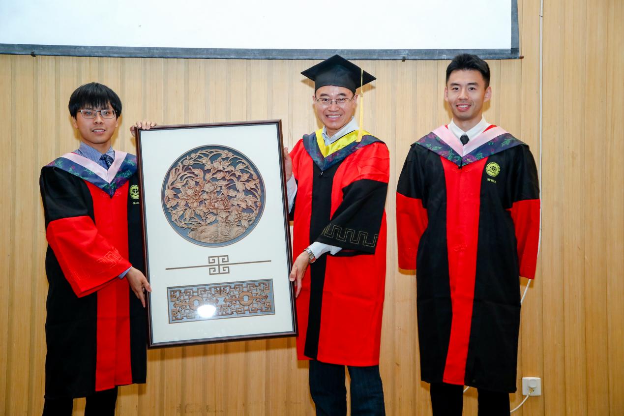 除了节目汇报之外,毕业生也准备了精心挑选的纪念礼物赠予学院,院长门洪华教授和党委书记徐红教授代表学院郑重接收并合影留念。