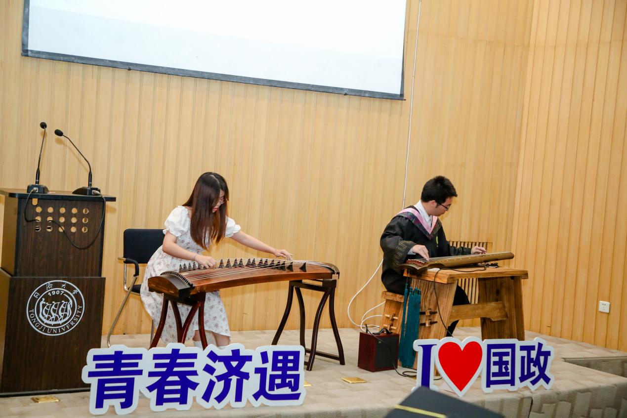 典礼过程中,毕业生们还带来了精彩纷呈的表演节目。冯骏鹏、张舒琪带来了一曲优美动人的琴筝合奏《卧龙吟》,石金质、杨阳、董佳伟献上了《山水一程,顶峰相见》的诗朗诵,以此表达对学院和各位老师的深深感激,以及对各位毕业生的美好祝愿。