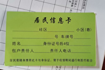 我所在的内蒙古武川县,虽然地处边远疫情较轻,但大家并没有放松,从进县城的交通到社区管理上都进行了严格的管控。为了更好控制人流出入,社区特地发放了红黄绿三种通行证,不同颜色有不同的允许出入次数。社区人员还走访了各家各户,对人员往来进行了登记,为楼道进行了消毒工作,也有人在门禁处执勤,对进出居民量体温、发放口罩。除此之外,也有大量的志愿者不计辛劳不计报酬地服务社区。