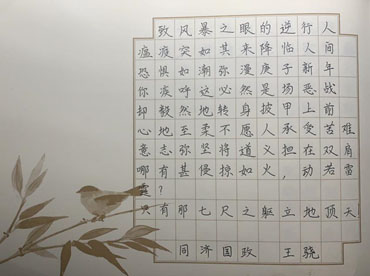 支部全体党员、入党积极分子和入党申请人积极响应本次活动,用自己笔触表达坚定打赢这次战“疫”的信心。同时也进一步加强了责任意识,提升对防疫抗疫问题的认知度,督促每一个人从自我做起,携手抗击疫情。每一次落笔都传递着温暖,每一张照片都彰显着信念,在这个特殊的时期,我们坚信,万众一心,没有翻不过的山,心手相牵,没有迈不过的坎。