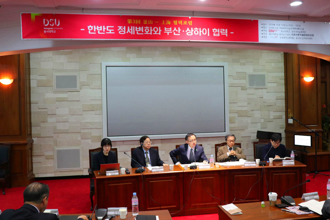 10月13日,论坛在东西大学民石图书馆6层国际会议厅正式举行。本届“上海-釜山合作论坛”讨论的主题是“韩半岛局势变化和釜山-上海合作”。东西大学中国研究中心所长辛正承大使首先致开幕词,向与会代表们介绍“上海-釜山合作论坛”举办的背景和出席此次第三届论坛会议的主要嘉宾。东西大学校长张济国教授代表东西大学致欢迎词,对来自中韩两国的参会人员表示热烈欢迎。
