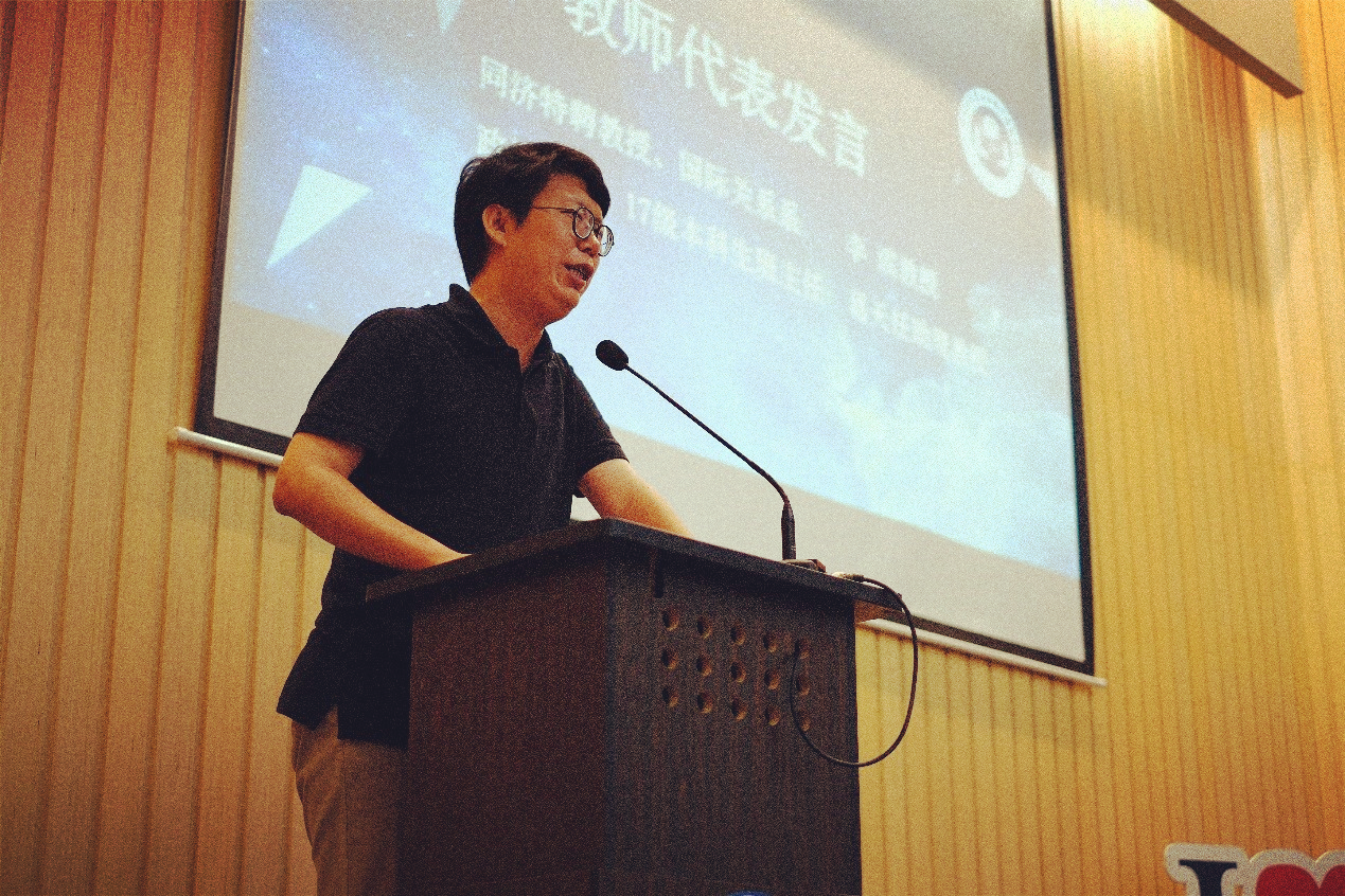 国政学院助理教授、2017级本科生班主任葛天任作为学院青年教师代表发言。葛天任老师结合亲身经历以及在担任班主任期间的亲身体悟,和新生们分享了如何度过大学时光的三点建议:第一,聆听内心的召唤。葛天任老师请新生们好好品读两句话,其一是德国著名社会学家、政治学家马克斯·韦伯在《以学术为业》、《以政治为业》两篇演讲中的论点:当一个人找到了自己的“生命之弦”,便会感觉到一种使命感。而要找到自己的生命之弦,最重要的是聆听内心的召唤。另一句则出自《中庸》,叫做“天命之谓性,率性之谓道”。第二,老老实实做人、踏踏实实做事。不做精致的利己主义者,不去幻想走捷径、抄小路。第三,但问耕耘、莫问收获。“博我以文、约我以礼”,应该是大学生活的主轴。很多知识,看似无用,实则有用,有用无用之间是人生实践的广度和深度所决定的。