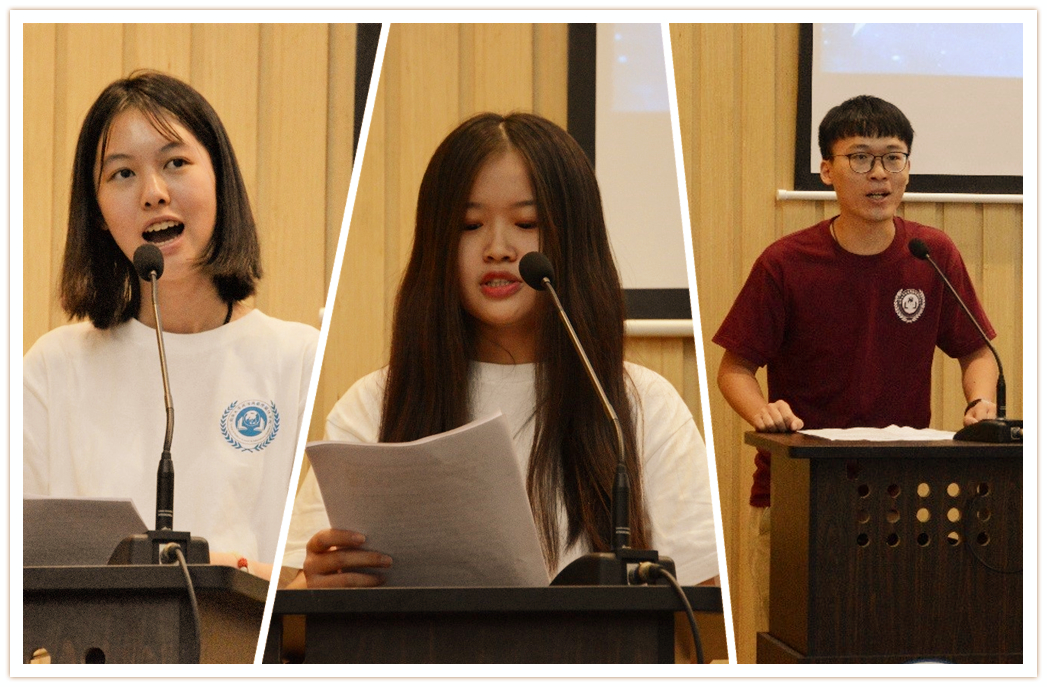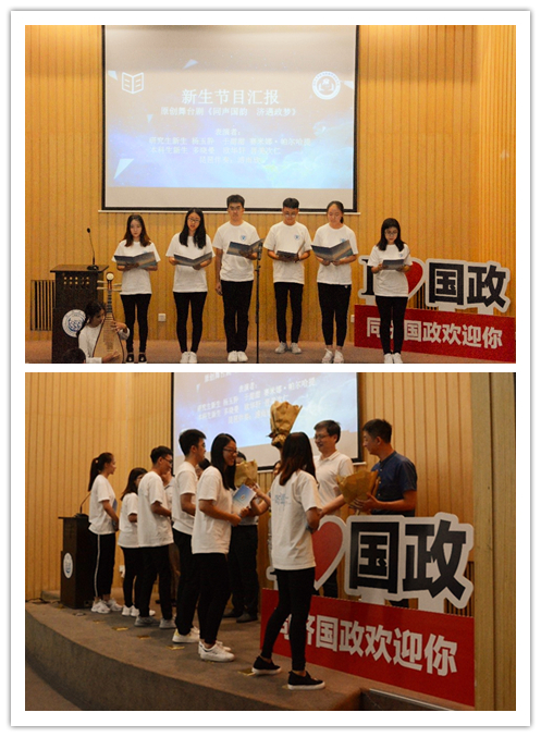 作为人文社科类学科,我院学子时刻以“观国政以经世济民,察社会方格物致知”的要求自勉。虽然准备时间紧迫,新生代表杨玉肸、于甜甜、赛米娜·帕尔哈提、多晓曼、欧华轩和晋美次仁,琵琶伴奏溥雨欣七位同学依然为开学典礼献上了诚意满满、慷慨激昂的原创诗朗诵《同声国韵、济遇政梦》,整个节目表演将现场氛围推向高潮。同时,恰逢即将到来的教师节,新生们也特意准备了写满祝福的花束送给学院,借此机会祝愿老师们节日快乐,现场氛围热烈而温馨。