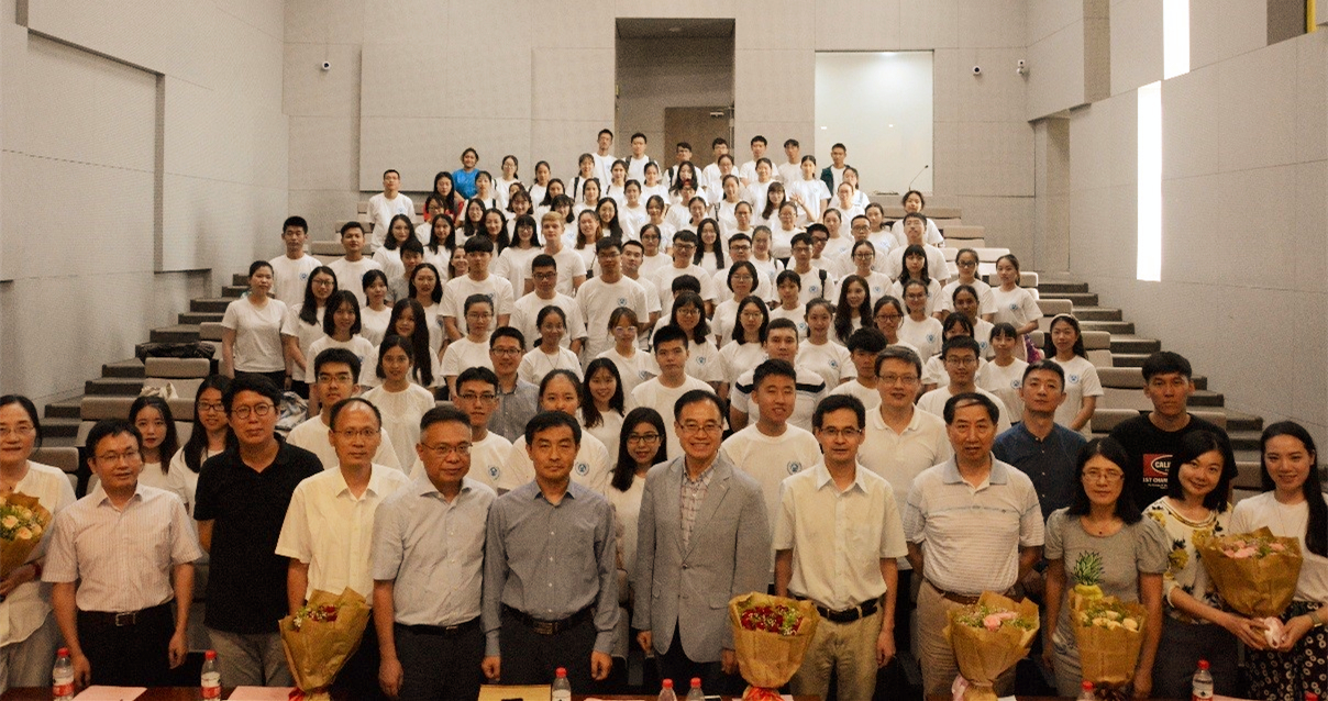 开学典礼结束后,在场的领导、老师们与新生们在会场内拍摄了第一张在同济大学的集体合影。