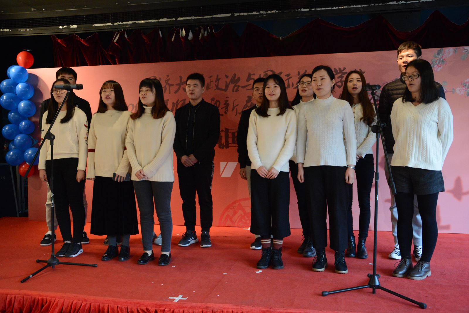 临近尾声,《行云流水》将优雅的古典舞、弥漫缭绕的古筝弦音和书法的文人风度柔和在一起,通过不同的视角将中华民族的文脉展现于众人。最后,由大一新生组成的团队,演绎了一场震撼人心的《杯子歌》。全场观众也跟着音乐拍手哼唱,会场内充满了温馨与欢乐,精彩而难忘的迎双新晚会也至此画上圆满的句号。