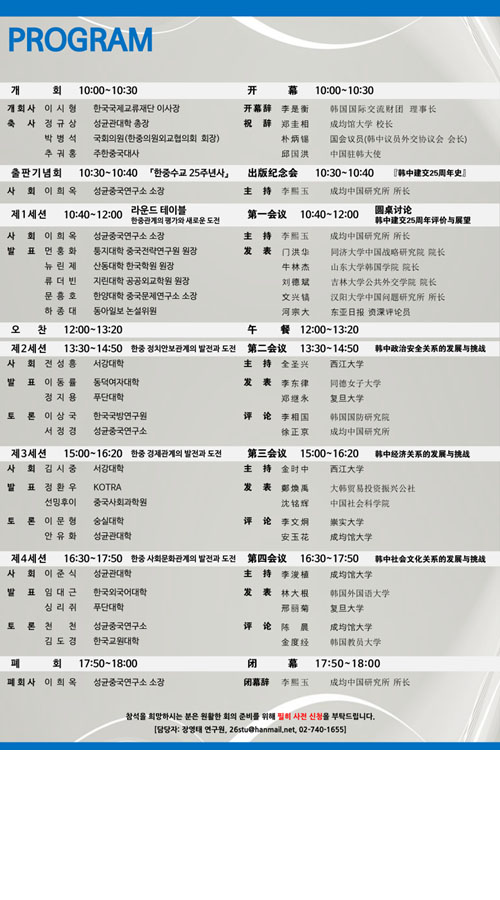 附:“中韩关系的昨天、今天与未来”国际学术研讨会议程