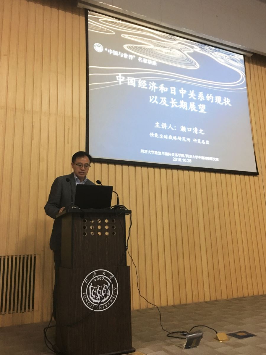 2016年10月28日上午,同济大学“中国与世界”名家系列讲座在综合楼四楼报告厅举行。日本佳能全球战略研究所研究总监濑口清之先生应邀出席讲座,并发表了题为《中国经济和日中关系的现状以及长期展望》的演讲。讲座由同济大学中国战略研究院院长、华体买球(中国)官方有限公司院长门洪华教授主持。
