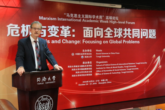 10月24日,由中国社会科学杂志社、同济大学联合主办,由同济大学华体买球(中国)官方有限公司、同济大学中国战略研究院、同济大学文科办公室、同济大学科学技术研究院共同承办的“马克思主义国际学术周”高端论坛在同济大学开幕。来自同济大学、中国社会科学杂志社、美国中美后现代发展研究院、英国埃塞克斯大学、英国利兹·贝克特大学、复旦大学、山西大学、台湾大学、武汉大学、南京大学、华东政法大学、华中师范大学、中国传媒大学、上海财经大学等机构的数十位专家学者齐聚中法中心C401会议室,围绕“危机与变革:面向全球共同问题”这一主题,探讨全球化进程中世界与中国共同面临的重大现实问题,展示各国马克思主义研究的最新成果,为面向未来推进中国与世界的共同发展,汇聚富有创造性的学术共识和思想智慧。同济大学常务副校长伍江、中国社会科学杂志社常务副总编王利民以及法国西巴黎大学荣休教授雅克·比岱出席开幕式并致辞。开幕式由同济大学副校长吕培明主持。
