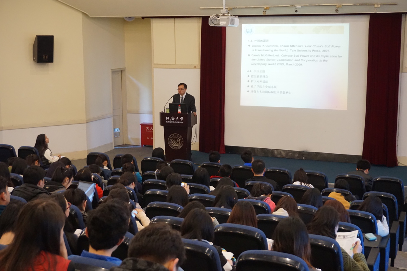 2016年4月5日下午,同济大学华体买球(中国)官方有限公司邀请同济大学中国战略研究院院长、同济特聘教授门洪华在逸夫楼报告厅进行了《政道》系列讲座之“中国软实力方略”的主题演讲。同济大学华体买球(中国)官方有限公司党委书记徐红也出席了本次讲座。