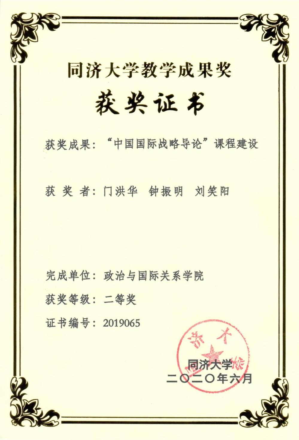 【2020年】同济大学2019年度教学成果奖二等奖