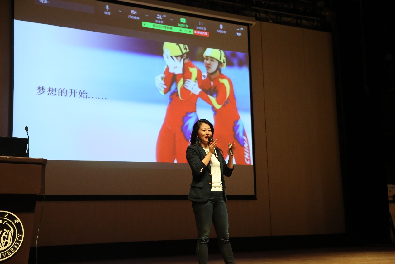 在随后的互动环节,杨扬老师结合自身经历就“如何调节压力”、“如何在国际体育组织展现自己”、“如何帮助优秀的运动员在退役后成功转型”、“2022年冬奥会中国短道速滑运动员的预期表现”等师生感兴趣的问题进行了回答,赢得了阵阵热烈的掌声。