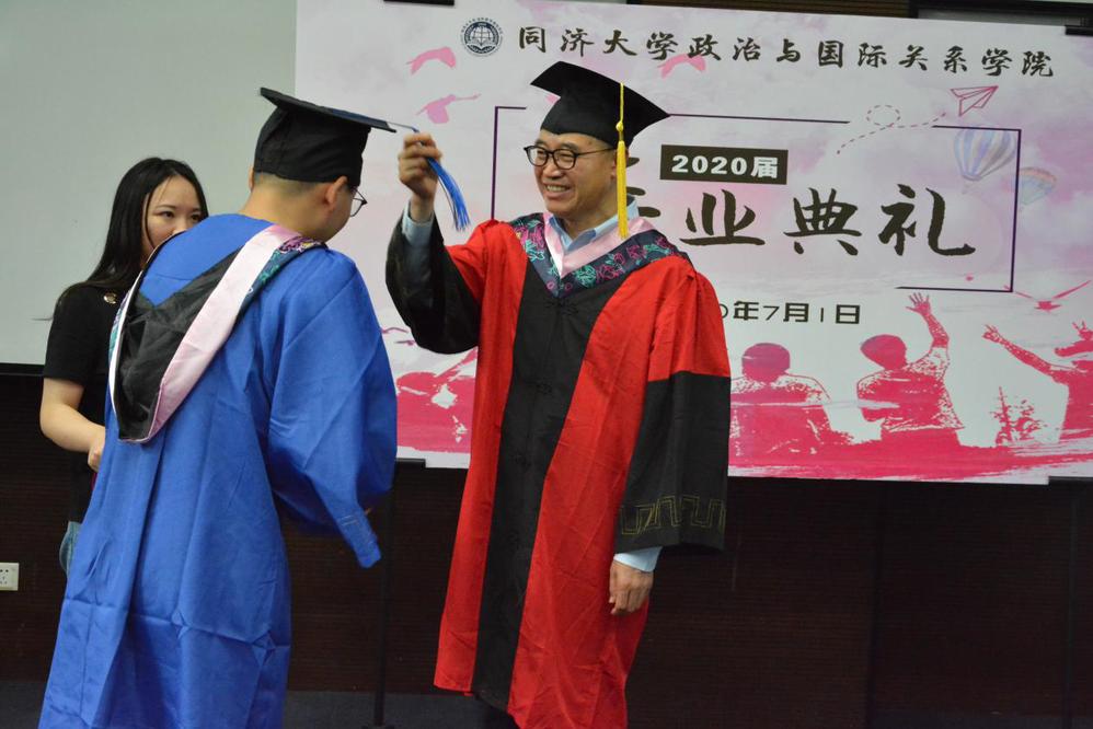 研究生毕业生代表李璞男同学说这是一届“特别”的毕业生,但家人在身边长情的陪伴,学校、学院在远方时刻的惦念,师门同窗在云端时常的鼓励和千千万万奋战在抗疫一线的广大志愿者们的付出,为我们带来毕业季的爱和守护。国政的研究生时光历历在目,十年国政,是一幅幅毕业合影所汇成的其乐融融。后浪终将入海,带着前辈的肯定与期许,带着同舟共济的同济精神,带着兼济天下的国政精神,毕业生们定会勇敢启航,乘风破浪。