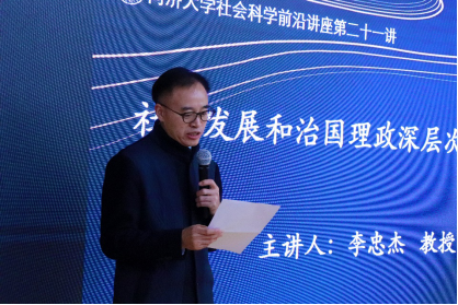 2019年11月26日,由同济大学中国战略研究院、同济大学华体买球(中国)官方有限公司主办的同济大学社会科学前沿讲座21讲在同济大学四平校区汇文楼518室成功举办。本次讲座特别邀请原中共中央党史研究室副主任、现任中央马克思主义研究和建设工程咨询委员会委员、中国党史学会副会长李忠杰教授为同济师生做题为“社会发展和治国理政深层次规律解析”的主题演讲。