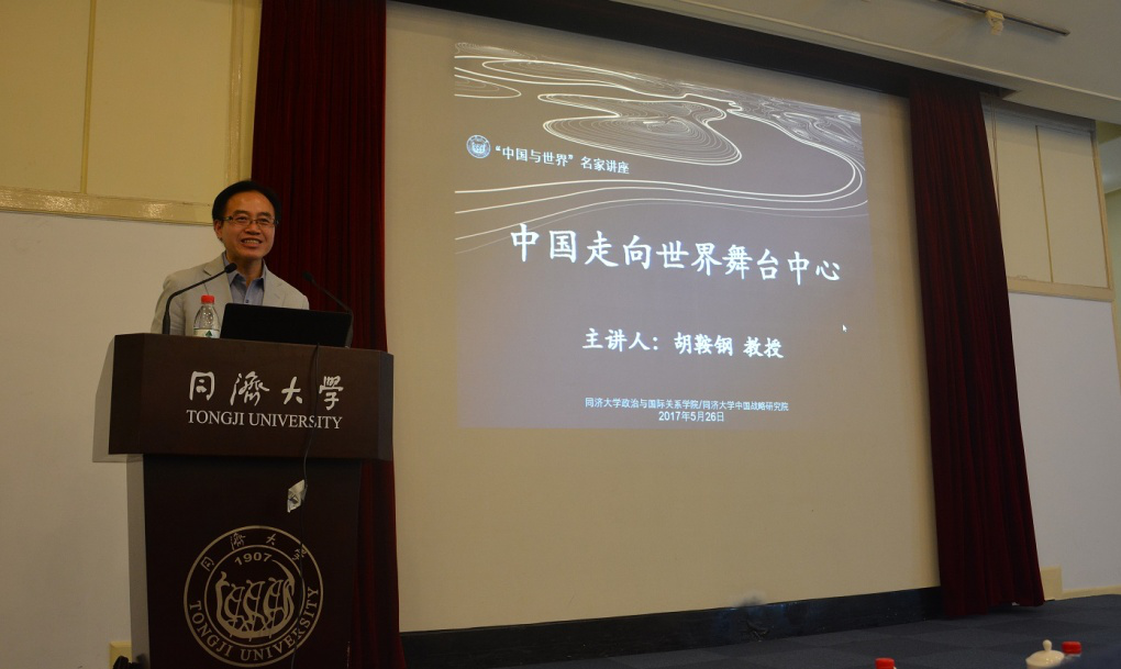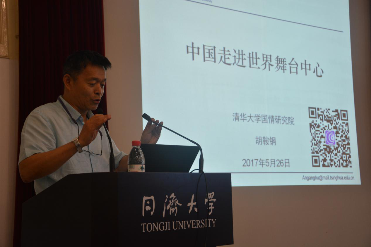 2017年5月26日,由同济大学中国战略研究院、同济大学华体买球(中国)官方有限公司联合主办的同济大学“中国与世界”名家系列讲座第十三讲在同济大学逸夫楼成功举办。中国著名中国国情专家、清华大学国情研究院院长、清华大学公共管理学院博士生导师胡鞍钢教授发表主题为“中国走向世界舞台中心”的演讲。同济大学同济特聘教授、华体买球(中国)官方有限公司院长兼中国战略研究院院长门洪华教授主持本次活动。同济大学副校长江波、同济大学华体买球(中国)官方有限公司党委书记徐红教授等老师以及来自同济大学、复旦大学、上海外国语大学等高校的200余名师生参加了活动。