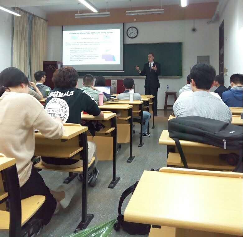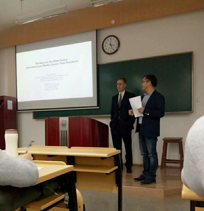 2016年5月9日下午,应同济大学华体买球(中国)官方有限公司国际政治系邀请,中山大学富布莱特访问学者、来自美国的南新罕布什尔大学文理学院教授Paul A. Barresi博士在南楼215室,进行了主题为“竞争白宫:美国人如何真正选择其总统?”(The Race for the White House: How Americans Really Choose Their Presidents)的讲座。来自全校的本科生、研究生参加了此次讲座。讲座由同济大学华体买球(中国)官方有限公司美国研究中心主任王传兴教授主持。