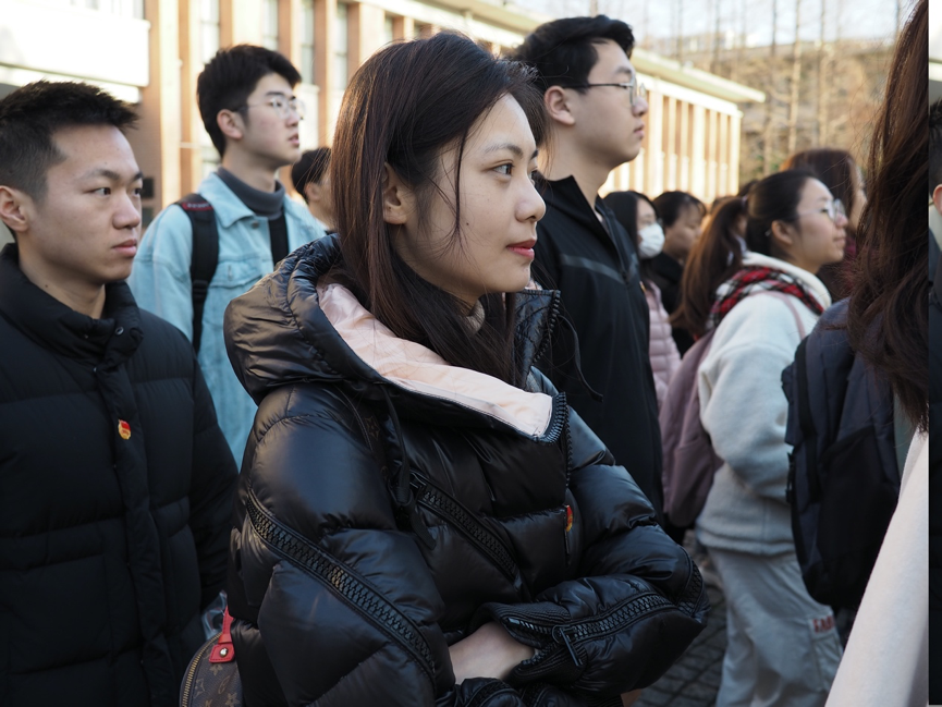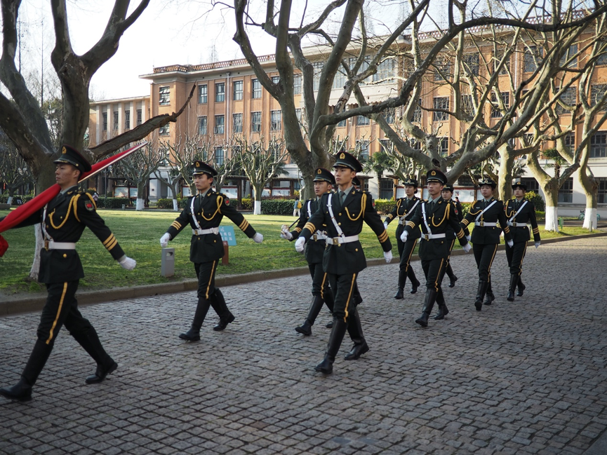 伴随着主持人蒋蕴宣布升旗仪式正式开始,激昂雄壮的国歌奏响,在全体师生的注目礼下,同济大学国旗护卫队的队员们昂首挺胸,迈着庄严而整齐的步伐,将五星红旗缓缓升向同济校园的天空之中。在嘹亮的国歌声中,五星红旗迎风飘扬,象征着同济学子积极进取、不懈奋斗的决心。