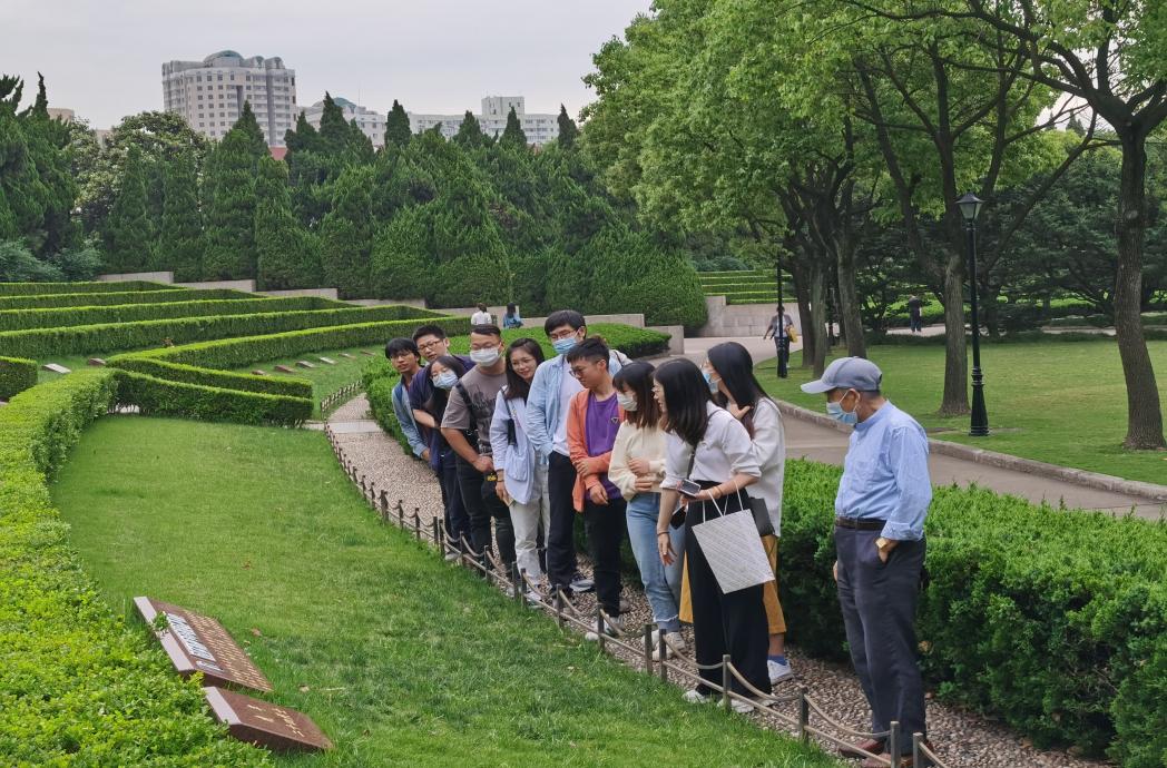 午后同学们乘车前往龙华烈士陵园,途中徐筠老师给大家认真讲解龙华烈士陵园的历史渊源。“早在1950年龙华地区挖掘出‘龙华二十四烈士遗骸’后,老一辈革命家就萌发了在此建立龙华烈士陵园以告慰先烈的心愿。”闻此,同学们敛笑屏神,气氛开始肃穆起来。