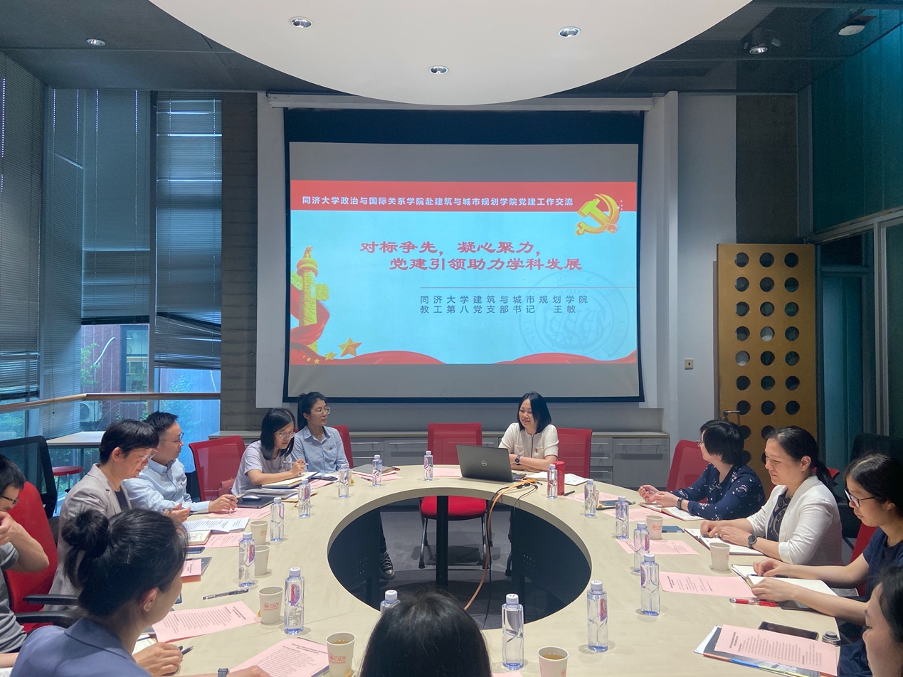 2021年5月11日下午,为学习同济大学兄弟院校党建工作先进经验,推进学院党建工作进一步发展,华体买球(中国)官方有限公司党委书记徐红率领学院全体基层党支部书记和部分支委赴建筑与城市规划学院开展党建调研。城规学院党委书记刘颂、党委副书记唐育虹、教工第八党支部书记王敏等对我院师生表示热烈欢迎,双方在建筑与城市规划学院C1会议室召开党建经验交流座谈会,就学院党建工作情况、全国党建标杆党支部的先进经验、“三全育人”机制等主题开展了广泛的交流和讨论。学院党委书记徐红、党委副书记宋波、教工第一党支部书记钟振明、教工第二党支部书记赵萍丽、教工第三党支部书记郑春荣、本科生党支部书记岑昱玮、院党委组织员宫振蒙及四位研究生党支部书记等十余人参加了本次交流活动。此次调研共包括三个部分:听取城规学院全国标杆党支部经验介绍、双方交流座谈和参观城规学院党员之家和双带头人工作室。