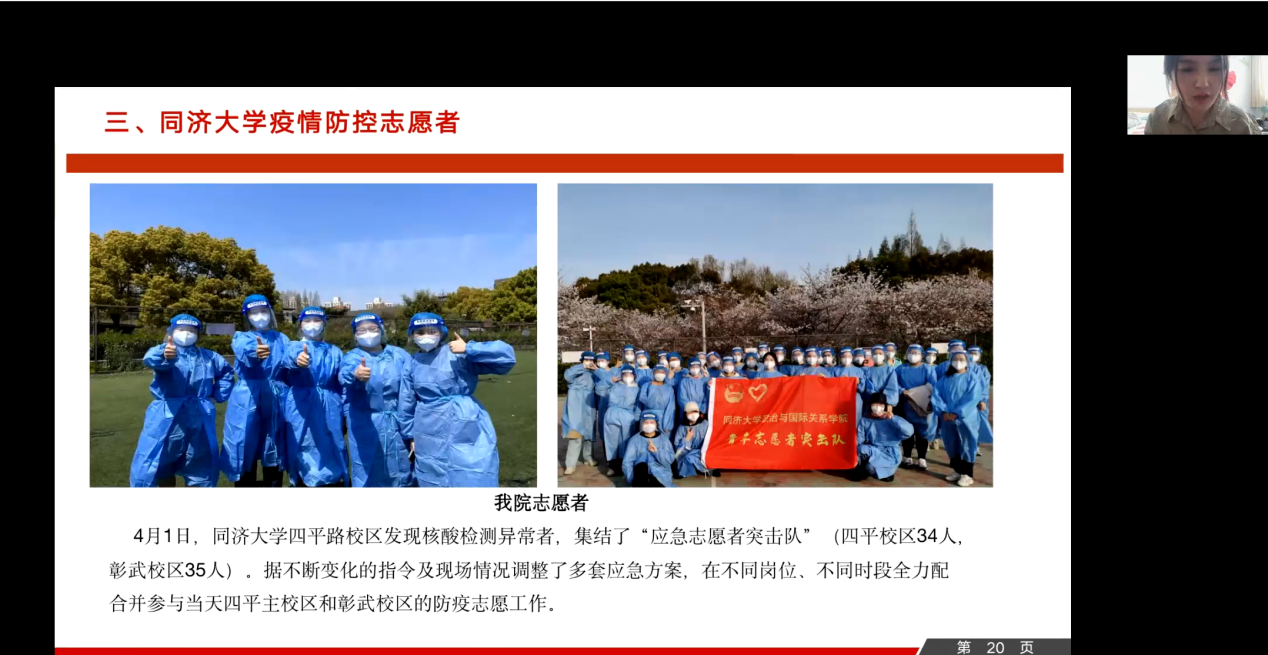 2022年4月17日,同济大学华体买球(中国)官方有限公司研究生第四党支部通过线上会议的形式召开四月份的组织生活会,支部联系领导、教育部长江学者特聘教授、同济大学华体买球(中国)官方有限公司院长、党委副书记门洪华教授参加并进行工作指导,组织生活会由第四党支部书记俞钦文同志主持。