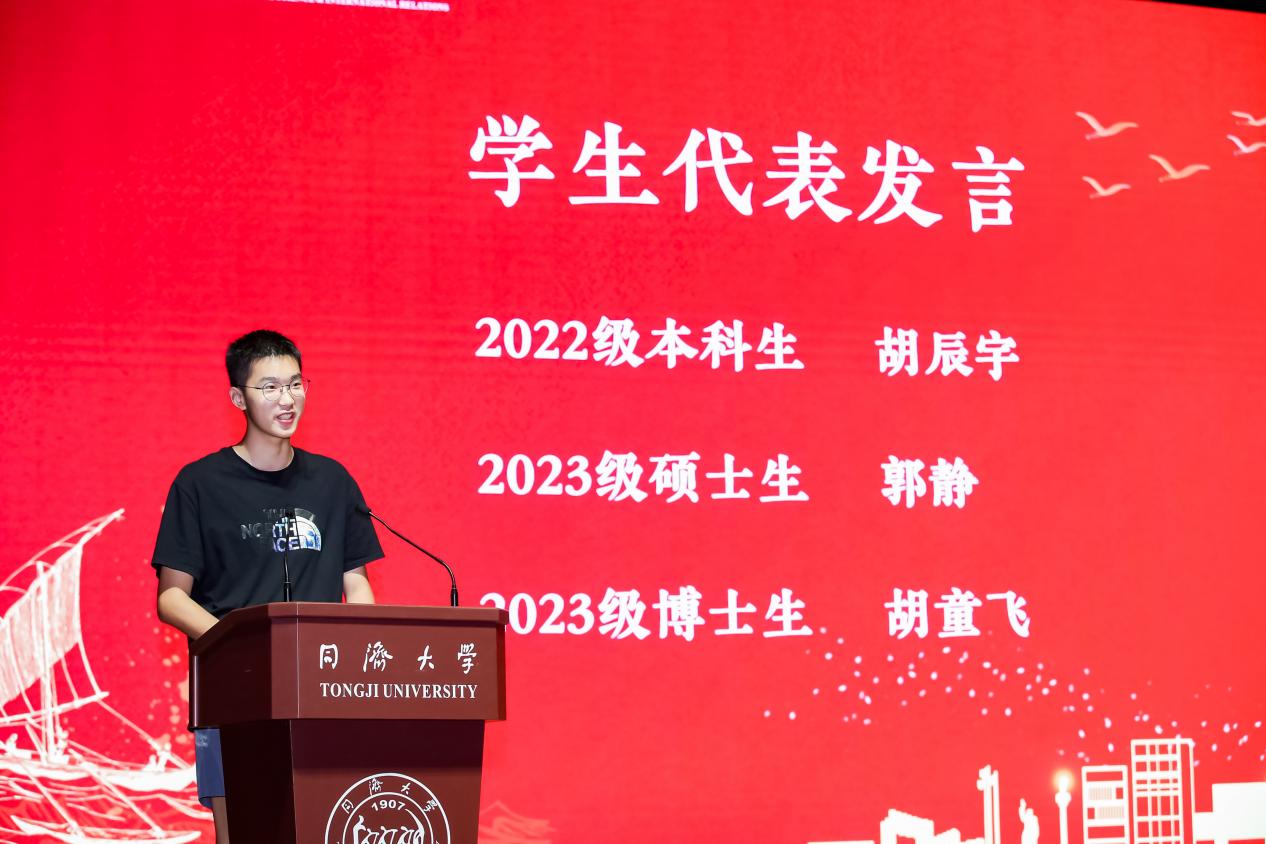 在新生代表发言的环节中,2022级本科新生胡辰宇向我们分享了他过去一年的经历与感悟。他首先回顾了大一繁忙而又充实的经历,提醒在座各位同学:本科学习需要拥有自主性,同时也要具备与时俱进的视野,抓住时代机遇。同时,他认为每一位国政人,都应当拥有团结一致、同舟共济的品格,并祝愿本科新生都能在未来获得卓越的成长。