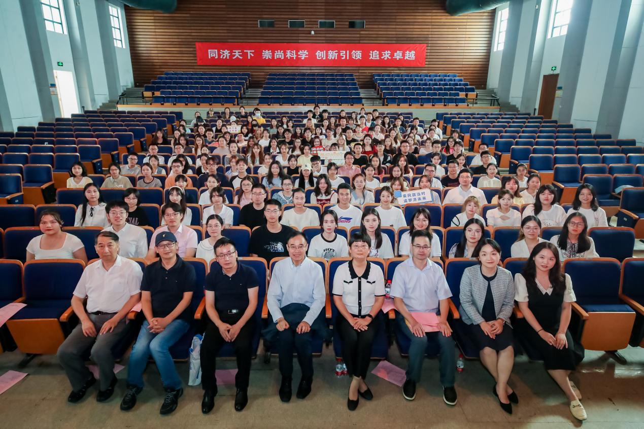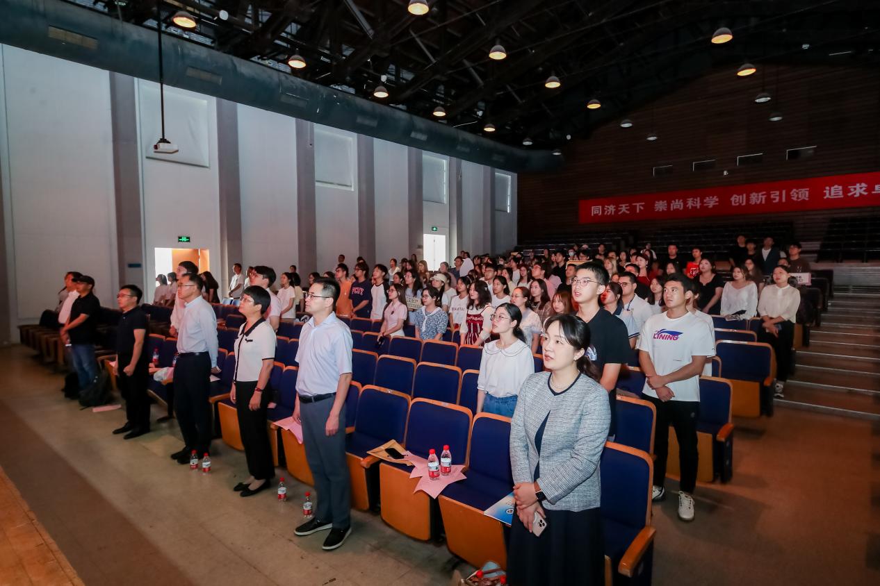 徐徐的歌声为本次开学典礼画上了休止符——在学院领导向学生代表赠送院徽后,全体师生合唱了校歌《同济之歌》,并留下珍贵合影。