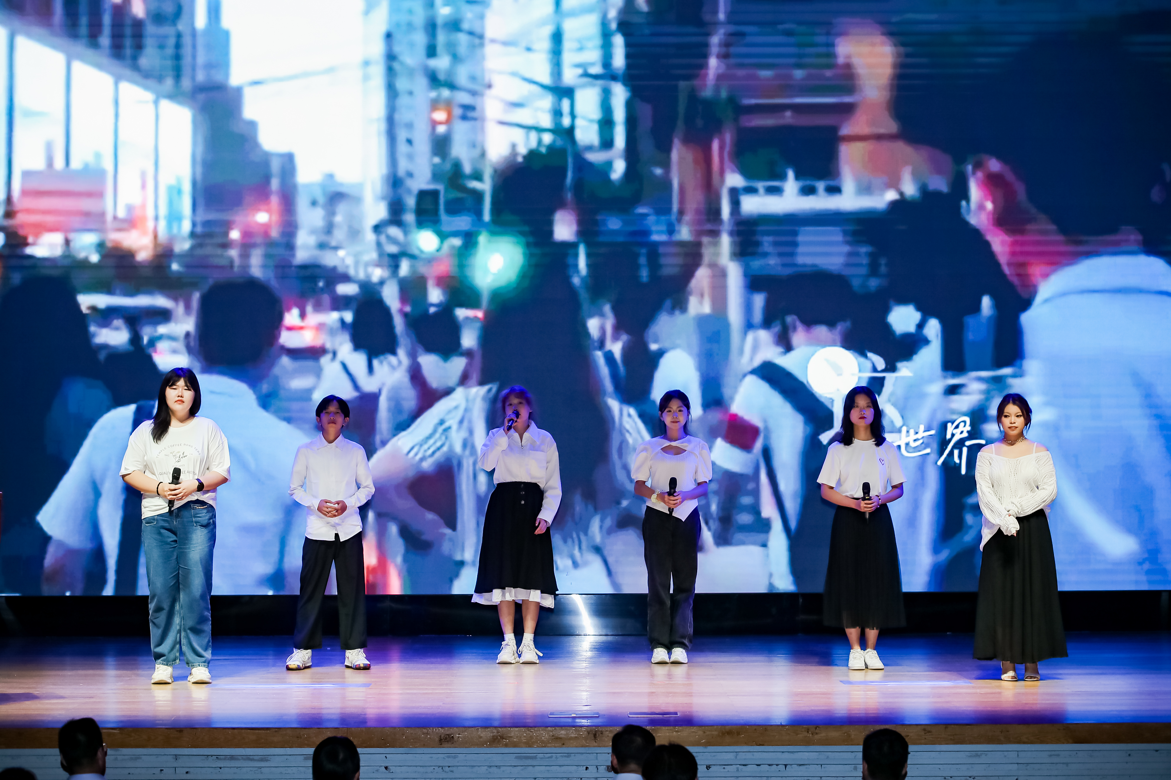 接着,由2022级本科的六位同学为我们表演了歌曲串烧《逆光》、《这世界那么多人》——寄语同学能够逆流而上、不畏挫折、不甘平凡,传递出同济国政新生们对未来学习生活的热切期盼。
