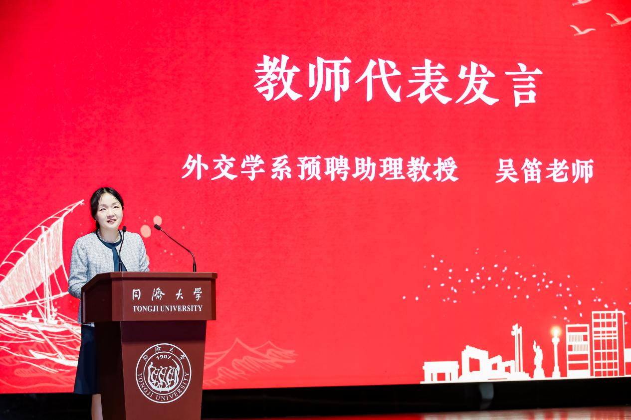 外交学系教师、预聘助理教授吴笛老师作为教师代表发言。