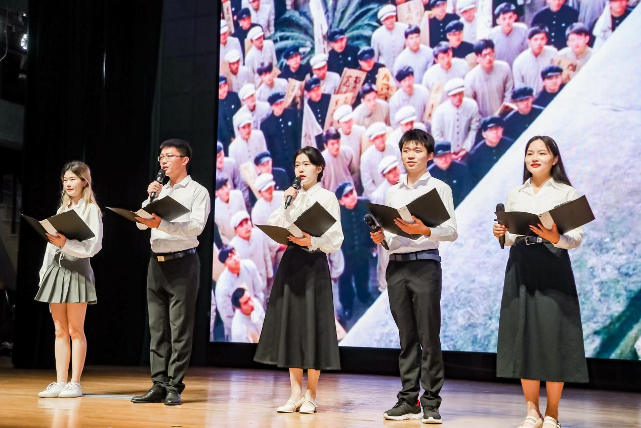薛冯旭、乔元晶、鲍润南、张弛宇、韦子函同学共同为全体师生带来诗朗诵《青春济世》。五位同学铿锵有力地朗诵出中华民族的家国情怀;并寄语在座的每一位同学,都能为中华民族的伟大复兴贡献出属于同济人的力量。