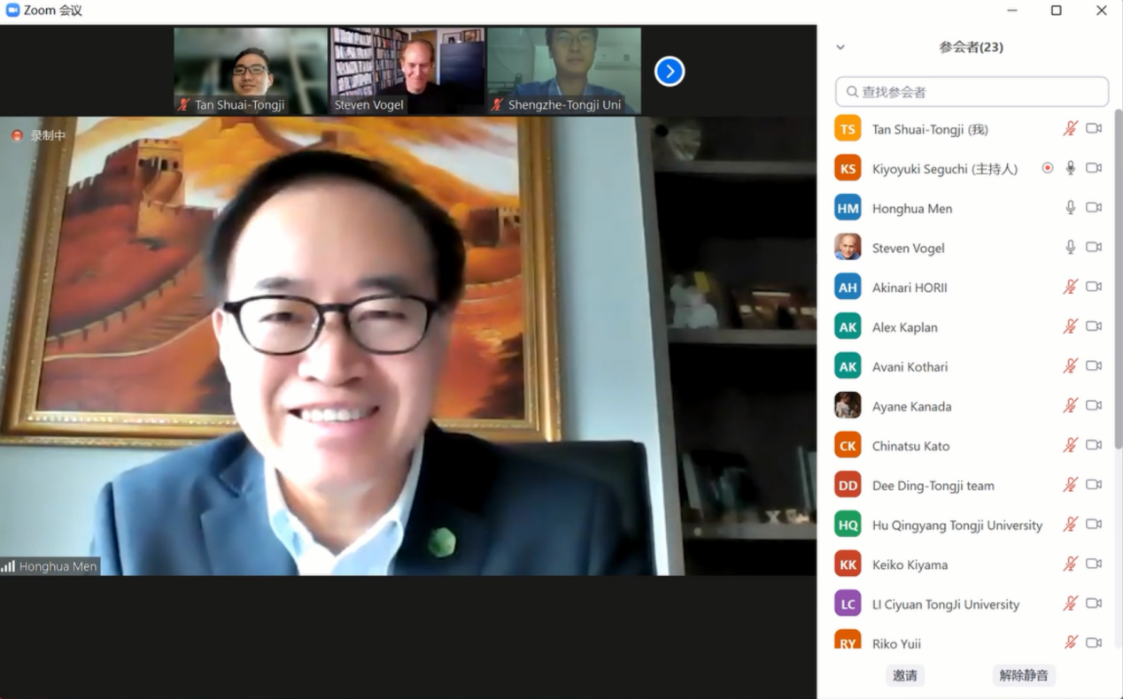 At the end of the webinar, Prof. Men commented on the three teams' presentations from analytical perspective and practical subject. He pointed out that Prof. Vogel's team has achieved fruitful results in governance techniques, especially young scholars’ participation in the construction of a network platform for state and firm monitoring under their framework. Prof. Seguchi's team has well applied the Eastern philosophy to the formation of world order, reflecting the lofty sentiments of the Japan team in governance by virtue and thought. The Tongji team focused more on the national role and influence in the world order formation. Through the case study of East Asia economic order, the Tongji team explored East Asia’s path of rebuilding the world order from the perspectives of regional cooperation and political consensus, providing a strategic panoramic view at a macro level. Dean Men further indicated that this is the third time that the International Symposium on “Global Governance and Reconstruction of World Order” has been held and we have discussed in depth the practices of global governance from the angle of international order and regional order respectively, while in the future symposiums, we should focus more on the international order construction with state as the subject, and culturally, investigate the commonalities between the East and the West in international identity and international norms, so as to better realize cultural exchange and international cooperation between the East and the West.