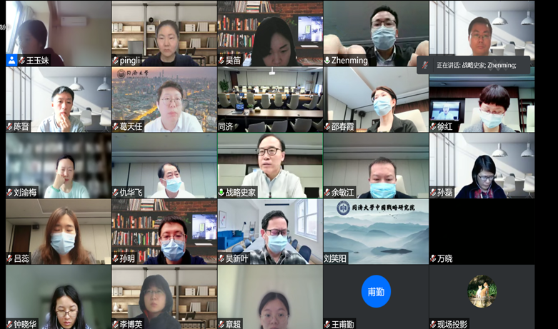 On the morning of April 10, 2022, the School of Political Science & International Relations (SPSIR) held a symposium on optimization of curriculum system both online and offline, in which 11 teachers staying in the school during the pandemic participated in the meeting offline at room 1802 of Zhonghe Building and the other 12 teachers exchanged and studied relevant topics online.