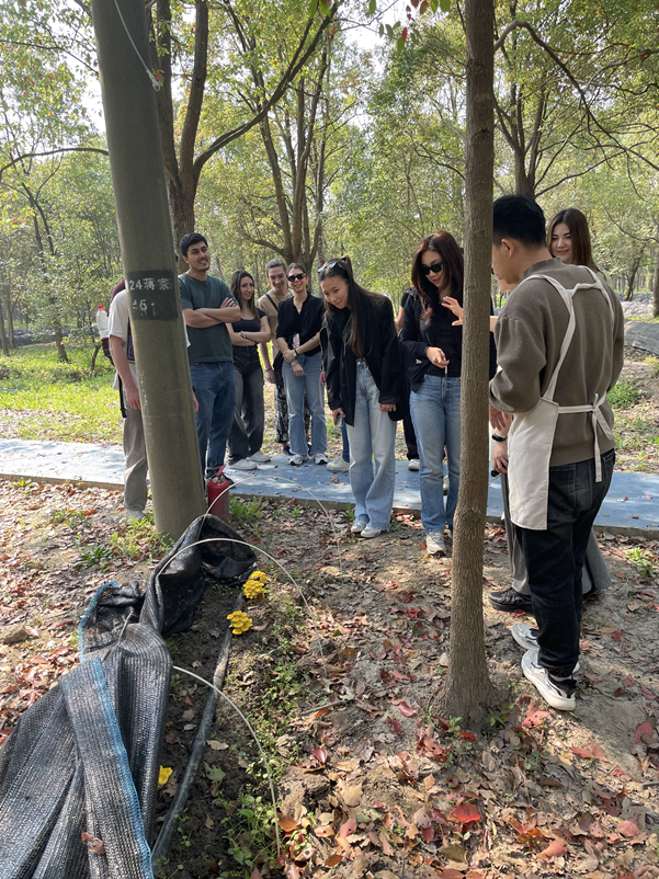 After the presentation, the students strolled through the fields and woods, immersing themselves in the landscape of the countryside. They wandered through forests rich with mushrooms and lingzhi, delighting in the graceful dance of butterflies and bees, listening to the hum of insects and the songs of birds, and basking in the peaceful sounds of nature. Emerging from the forest, they were greeted by fields of golden rapeseed flowers, their fragrance filling the air. Mesmerized by the spring scenery, many students took out their phones to capture the idyllic charm of Shanghai's countryside.